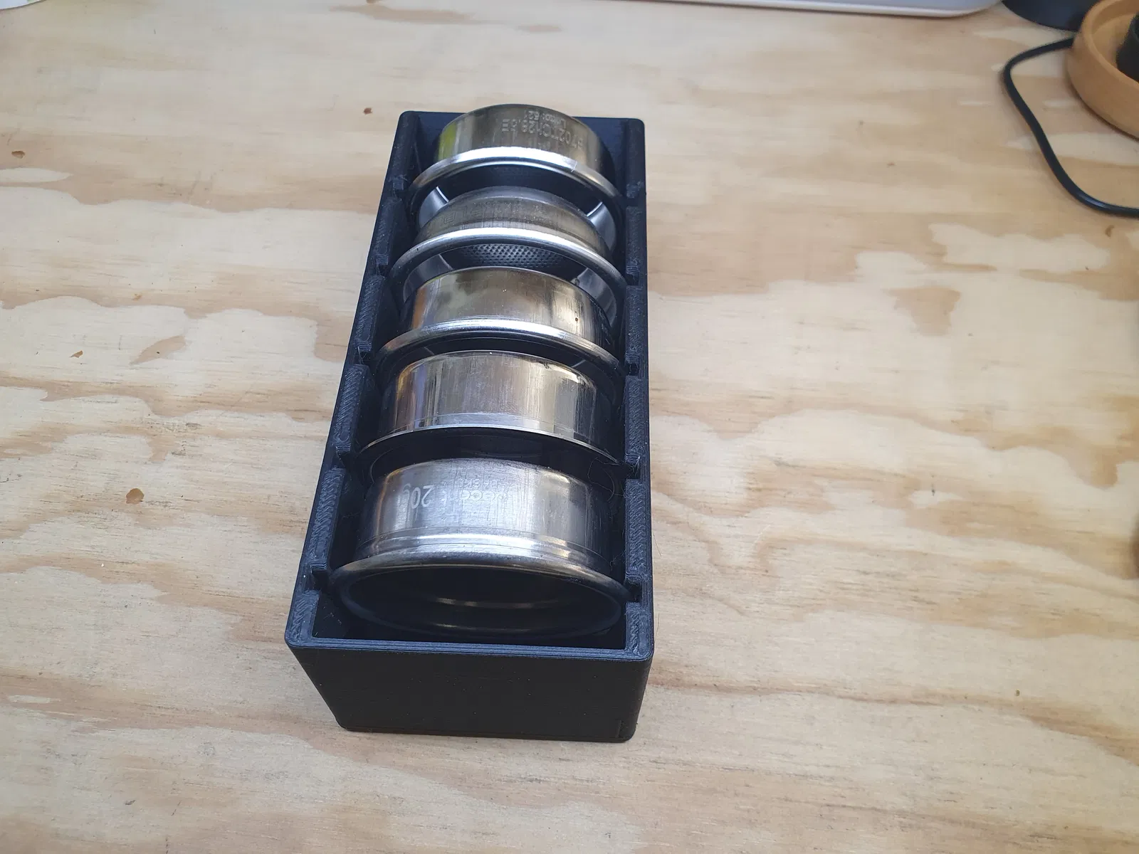 Mẫu giá đỡ thông minh giúp sắp xếp gọn gàng 5 chiếc filter basket espresso 58mm. Thiết kế linh hoạt cho phép để đứng hoặc nằm ngang, dễ dàng lấy ra và hạn chế đọng vụn cà phê, phù hợp với các loại basket có chiều cao lên đến 29mm.