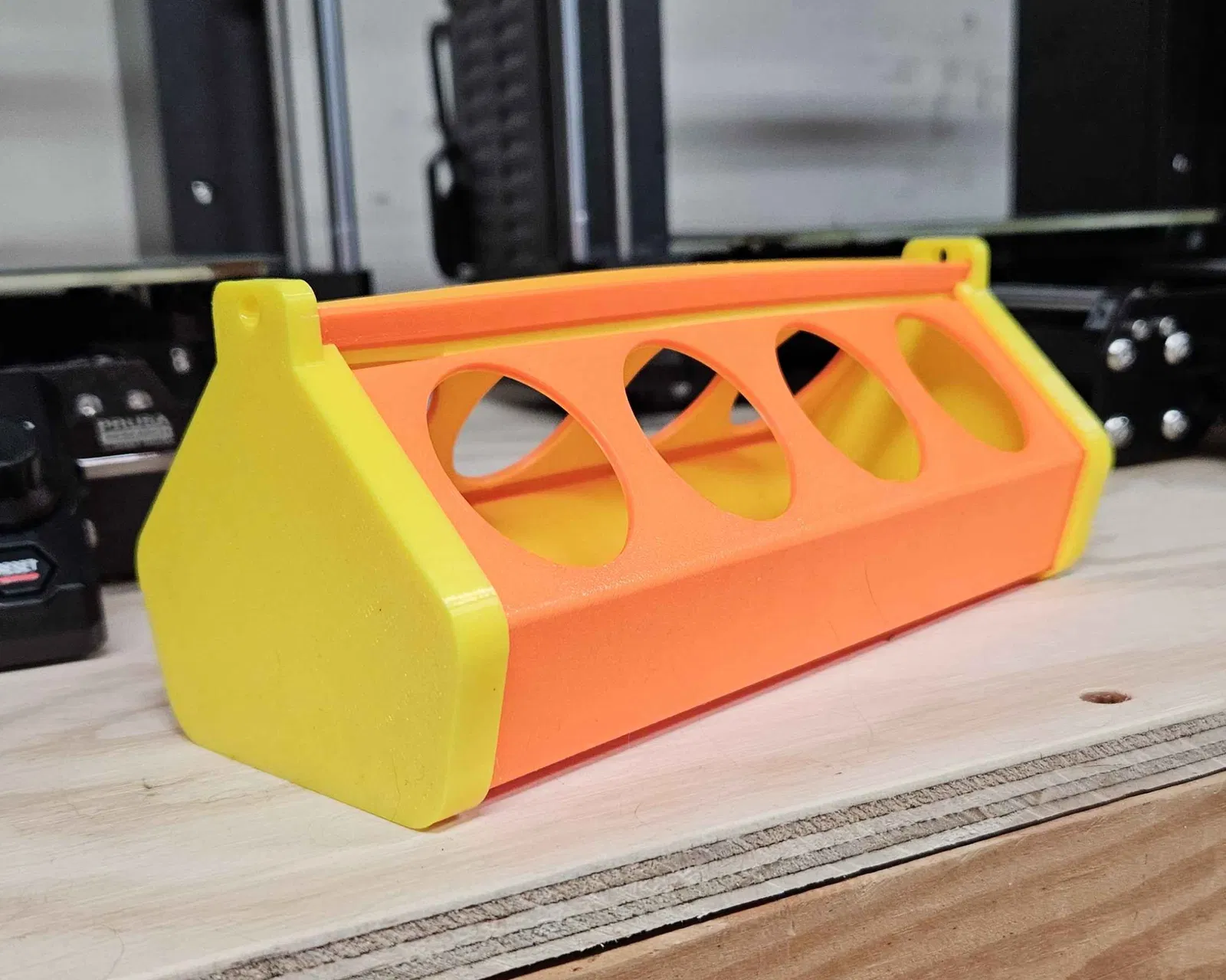 Phần thân được in phẳng, sau đó bạn nhẹ nhàng gập các góc lại và ấn vào các mảnh bên hông. Mình thấy cách dễ nhất là bắt đầu từ một góc dưới cùng rồi lần lượt gắn lên phía trên. Bạn có thể dùng dây treo máng ăn này qua các lỗ nhỏ được thiết kế sẵn.