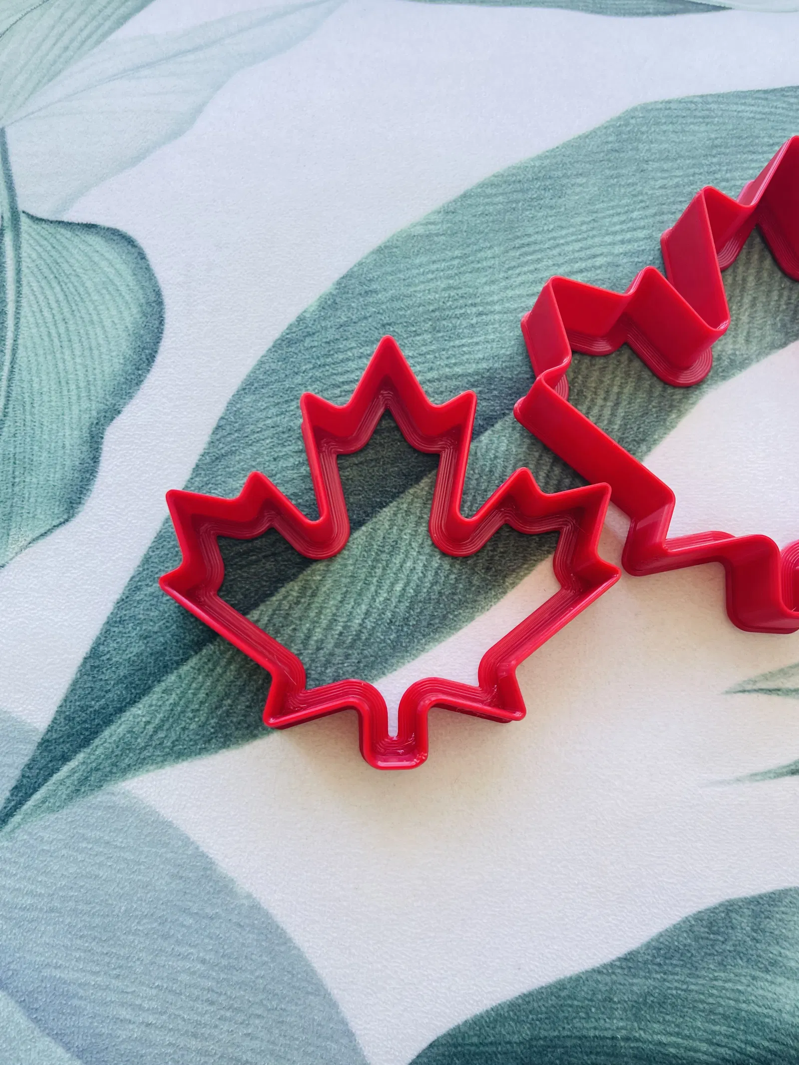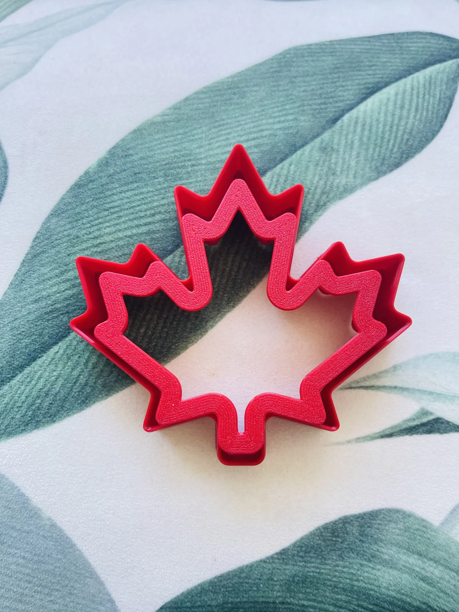 Khuôn cắt bánh quy hình lá phong với hai kích thước lớn và trung bình. Thiết kế dễ in, bền bỉ khi dùng nhựa PETG và có thể lồng vào nhau để cất gọn gàng trong nhà bếp.