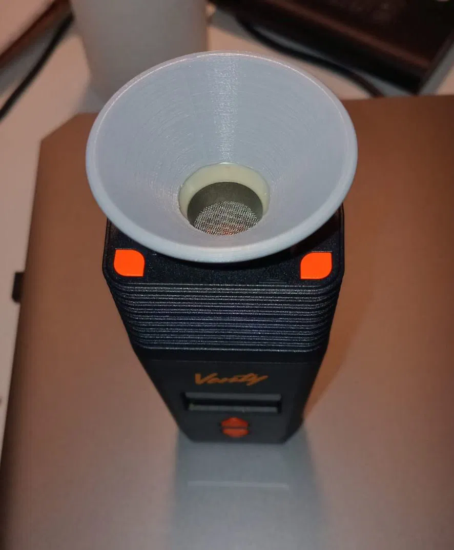 Phụ kiện này được thiết kế để lắp đặt cực kỳ dễ dàng lên miệng buồng đốt của máy VENTY. Bạn chỉ cần đặt phễu khớp vào vị trí, sau đó đổ thảo dược đã xay nhuyễn vào qua miệng phễu. Thiết kế miệng phễu rộng giúp bạn thao tác một cách thoải mái, hạn chế tối đa việc thảo dược bị rơi vãi xung quanh. Đây là món đồ chơi 3D in ấn nhỏ gọn nhưng mang lại sự tiện lợi rất lớn trong quá trình sử dụng hằng ngày cho những ai yêu thích sự ngăn nắp.