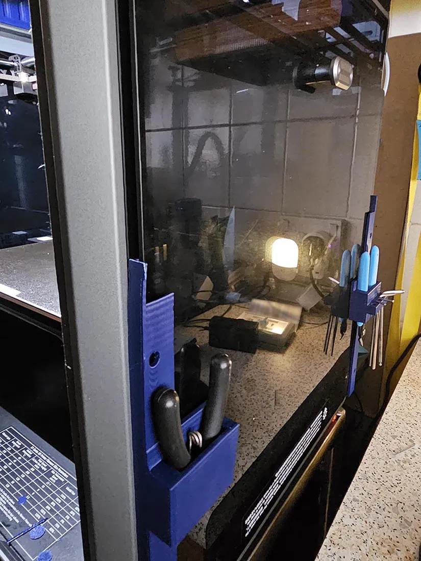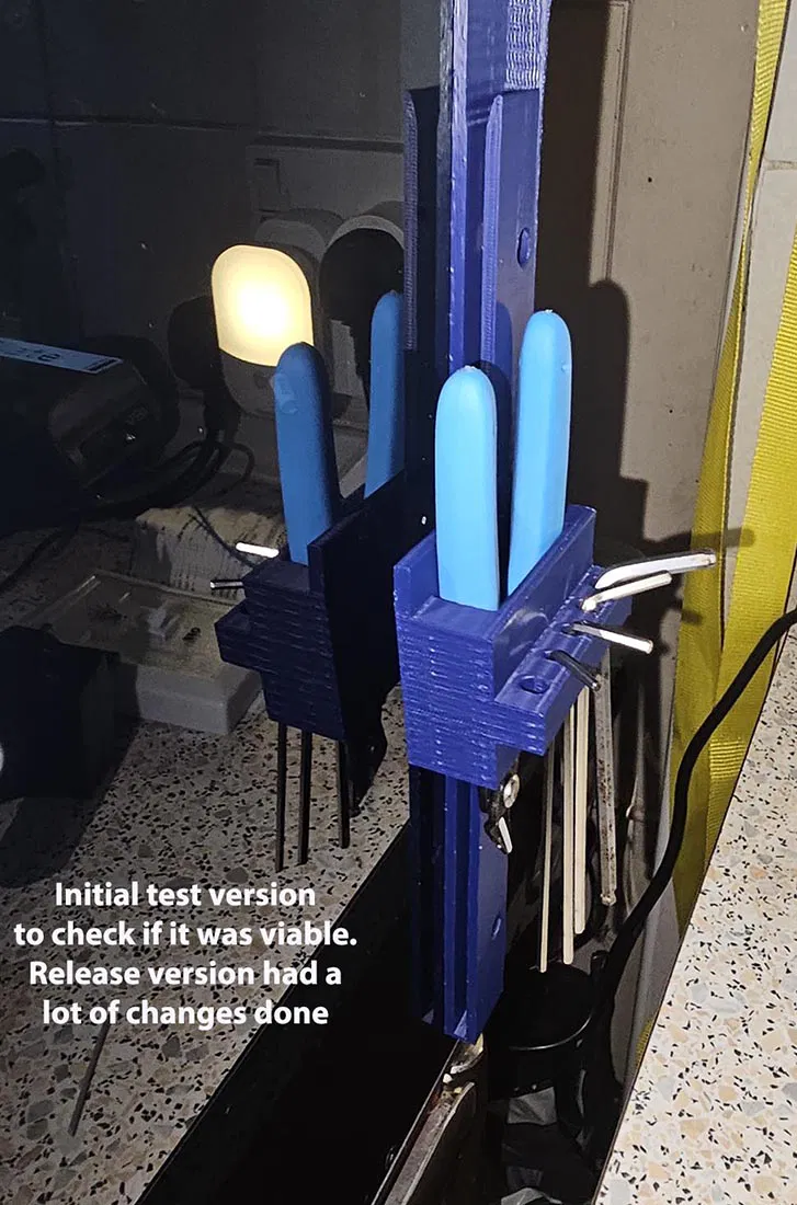 • Phiên bản 4: Tương tự bản 3 nhưng có thêm ngăn cắm lục giác. Mình đã cập nhật file STL để các cây lục giác nằm riêng biệt trong từng khe, giúp cố định chắc chắn và dễ dàng lấy ra.