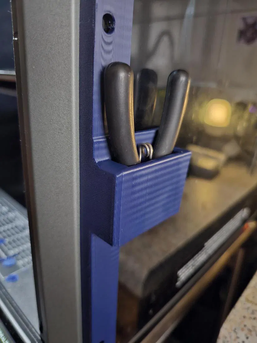 • Phiên bản 3: Dành cho kìm cắt. Mình đã nới rộng khoảng trống lên hơn 13mm để vừa với các loại kìm to hơn. Thiết kế cho phép cắm kìm theo hướng mũi xuống, giúp phần cán giữ chặt vào thành giá đỡ.
