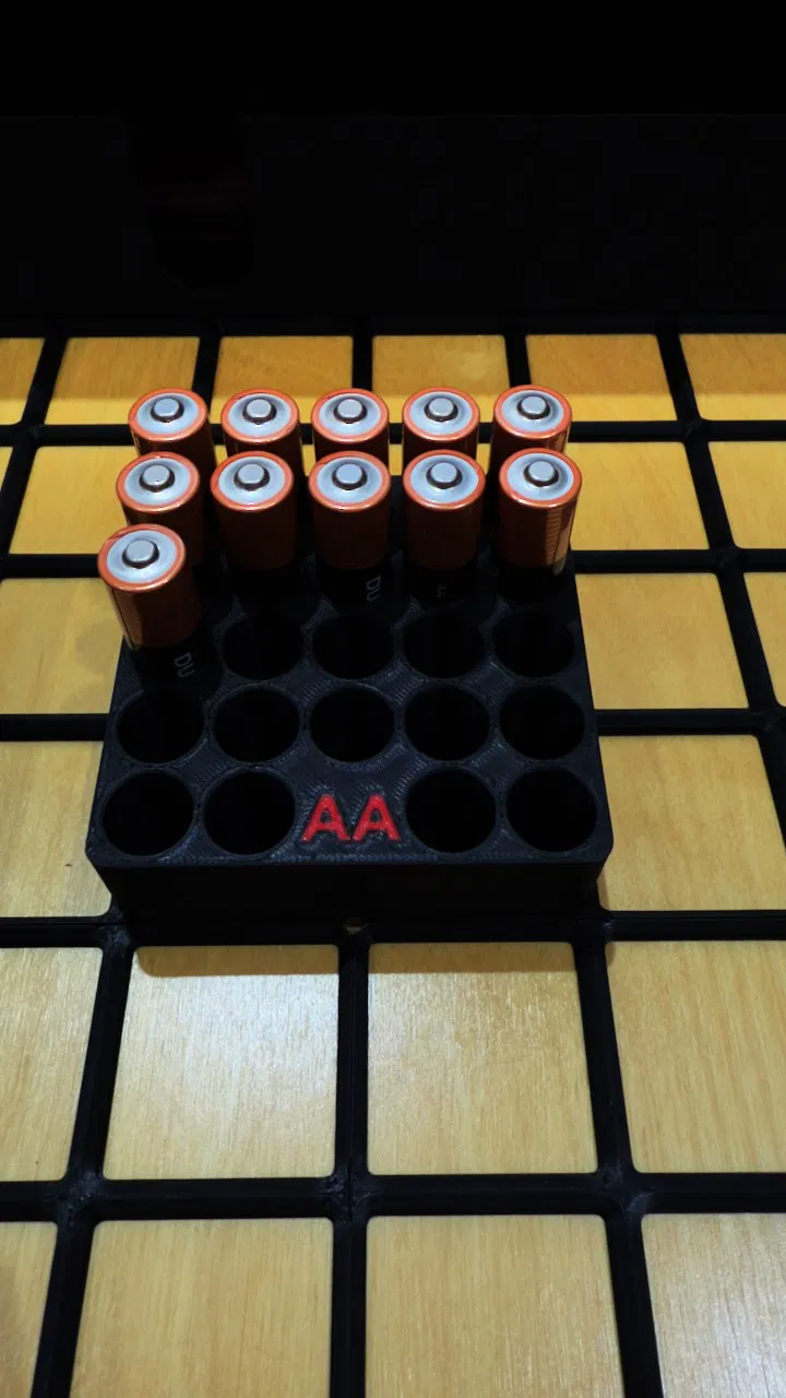 Khay đựng pin Gridfinity kích thước 2x2 chuyên dùng cho pin AA. Sản phẩm đi kèm phần nhãn in tách biệt để bạn dễ dàng phối màu cho máy in đa sắc, giúp việc lưu trữ pin trở nên gọn gàng và khoa học hơn.