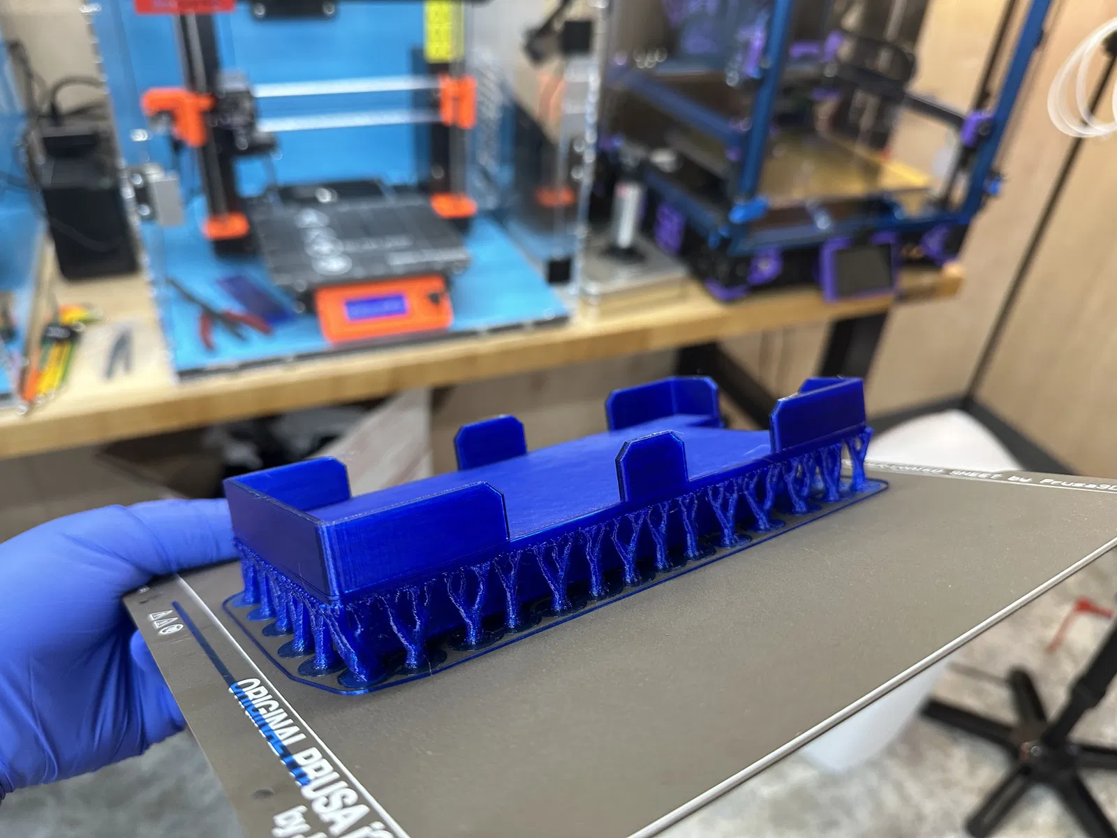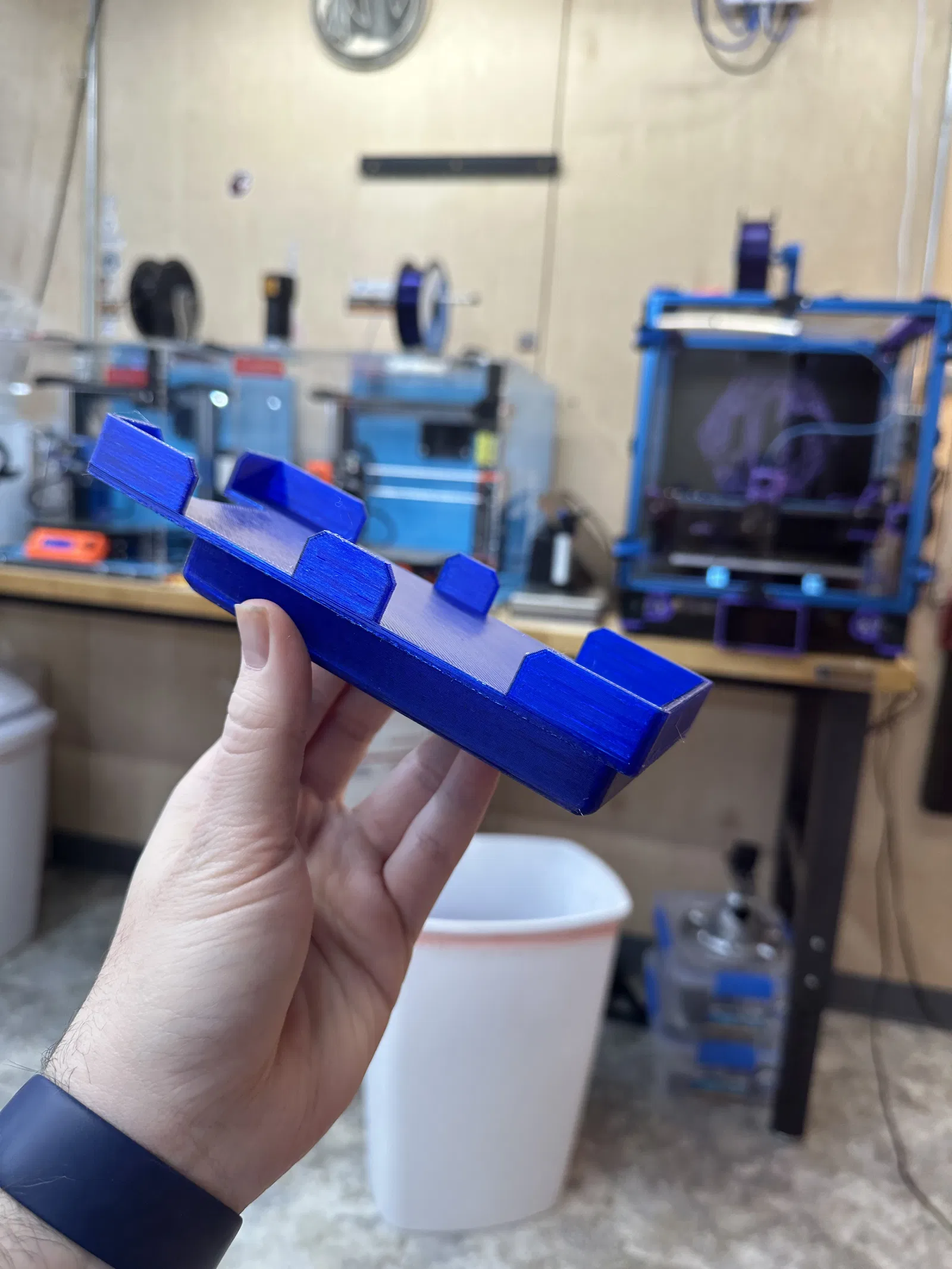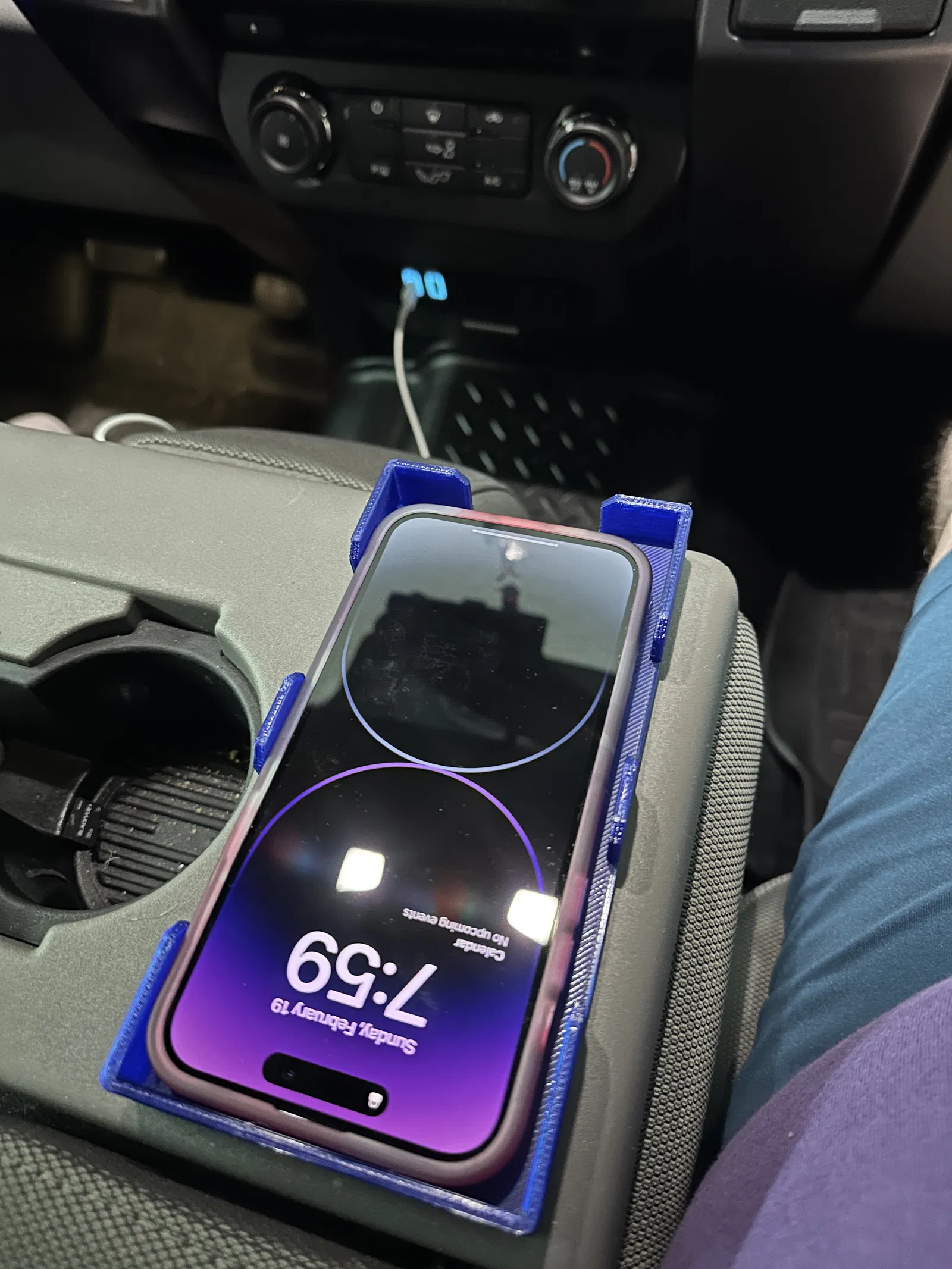 Chào mọi người! Đây là giá đỡ điện thoại được thiết kế gắn phía sau bệ tì tay gập ở hàng ghế trước cho các dòng xe F150. Mình đã từng sử dụng phiên bản này của Buzzkc trên Thingiverse trong vài năm qua. Phiên bản lớn hơn này được mình tùy chỉnh lại cho phù hợp với nhu cầu sử dụng thực tế. Nó vừa vặn thoải mái cho iPhone 14 Pro Max khi dùng kèm ốp lưng mềm Speck. Bạn có thể đặt điện thoại theo hai chiều khác nhau mà vẫn dễ dàng thao tác các nút bấm, đồng thời vẫn cắm được dây sạc hoặc kết nối Apple CarPlay. Mẫu này tương thích với các đời xe từ 2015-2020 có trang bị bệ tì tay trung tâm dạng gập. Mình in sản phẩm này bằng nhựa Hatchbox Translucent blue PETG (như hình), sử dụng chế độ Organic tree supports trong Prusaslicer 2.6 Alpha 3.