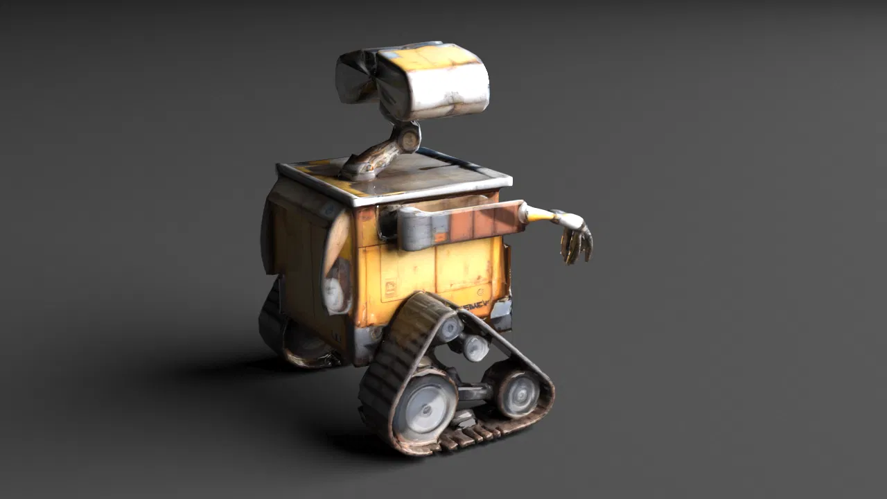Mô hình nhân vật Wall-e Robot. Lưu ý rằng các hình ảnh hiển thị là bản render 3D, không phải ảnh sản phẩm đã in. Bạn có thể xem thành phẩm in thực tế tại phần "Makes" của tác giả.