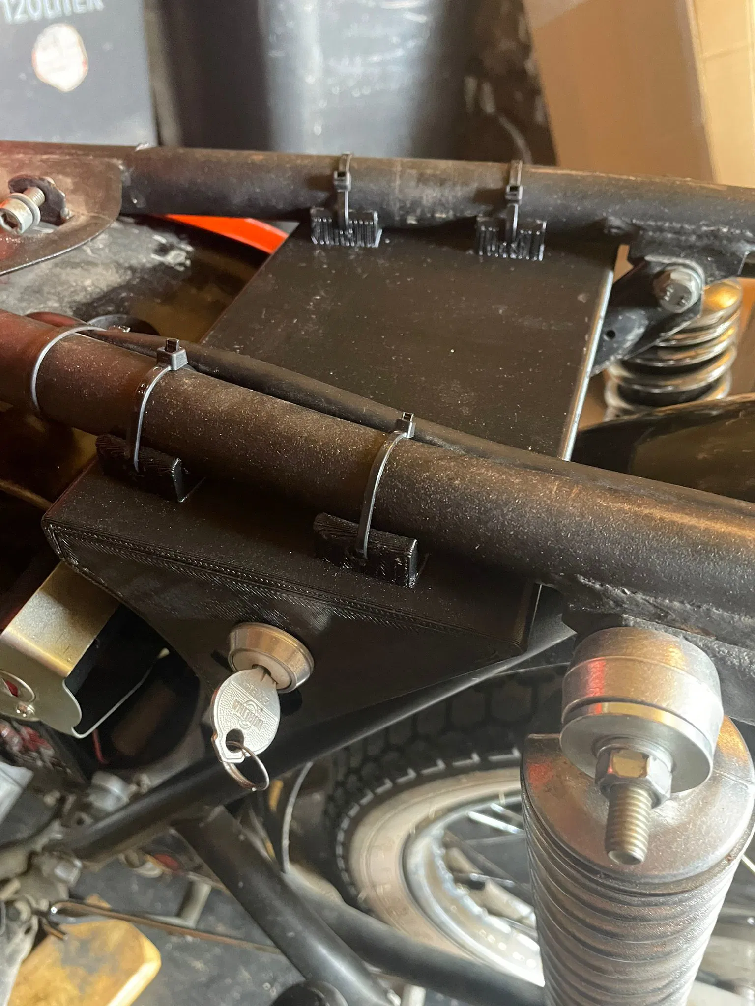 Sản phẩm này mang đến giải pháp lưu trữ cực kỳ tiện lợi cho các tay lái đam mê xe cổ. Với thiết kế chắc chắn và được cố định vào khung xe thông qua dây rút nhựa (zip ties), hộp đựng đảm bảo sự ổn định ngay cả khi xe di chuyển trên những cung đường xóc nảy. Nhờ tích hợp ổ khóa đi kèm, bạn có thể hoàn toàn yên tâm bảo vệ các vật dụng bên trong khỏi việc mất cắp hoặc rơi rớt khi đang đi trên đường.