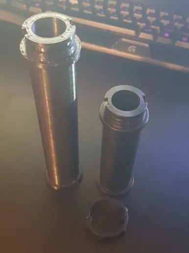 Mình cần một cái giá đỡ cuộn nhựa dài hơn cho cuộn nhựa 2kg của Devil Design. Mình đã tạo ra một bản sao y hệt bản gốc và hai phiên bản dài hơn. Mình đã in thử bằng nhựa PETG và cho đến giờ thấy nó khá là chắc chắn.