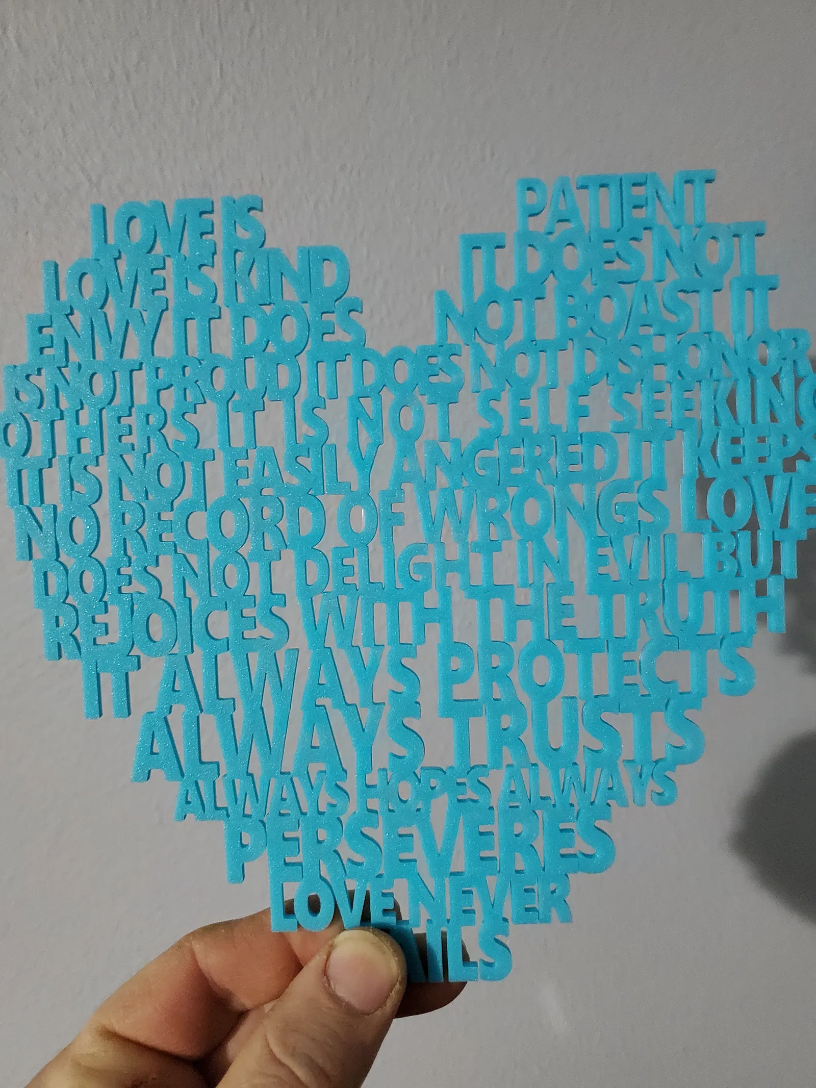 Trái tim Valentine độc đáo, có thể dùng kèm chân đế hoặc treo tường. Để có kết quả in tốt nhất, bạn nên đặt mặt phẳng xuống dưới bàn in. Đây là món quà tuyệt vời dành tặng người thương nhân dịp Valentine hoặc những dịp đặc biệt.