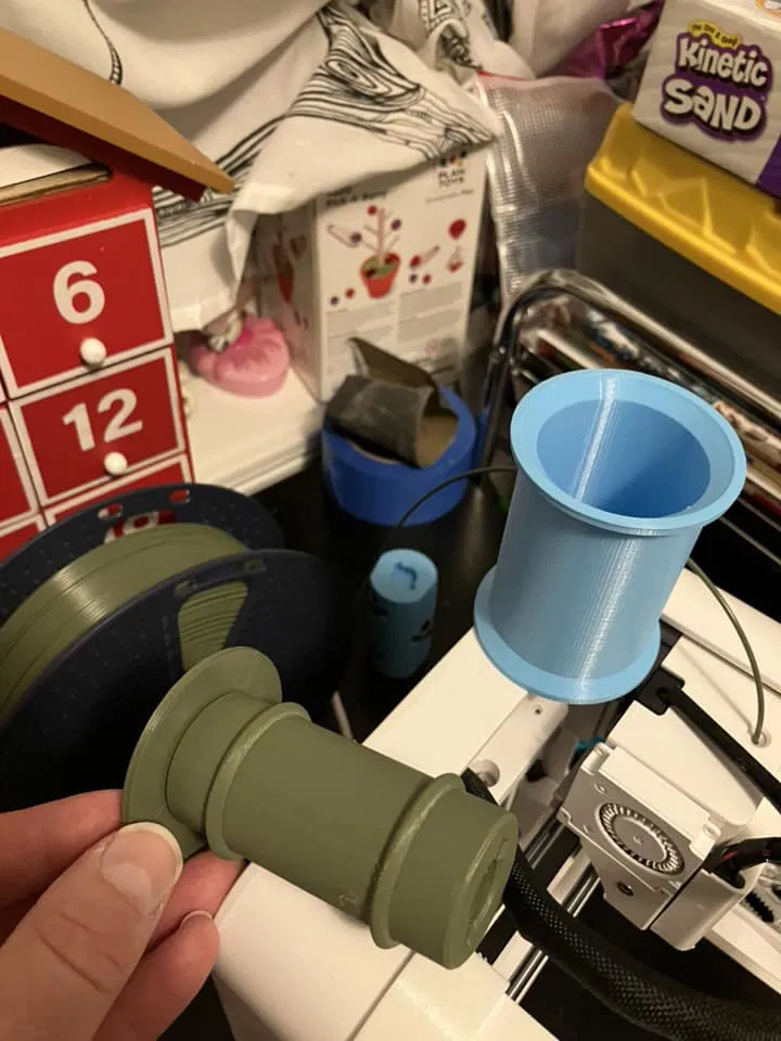 Nhựa PLA tiêu chuẩn là ổn, miễn là bạn in 100% infill cho chốt kết nối 6 cạnh. Mục đích chính của việc in cái này là để dùng được các cuộn nhựa 1kg khác trên máy Alpha 2.