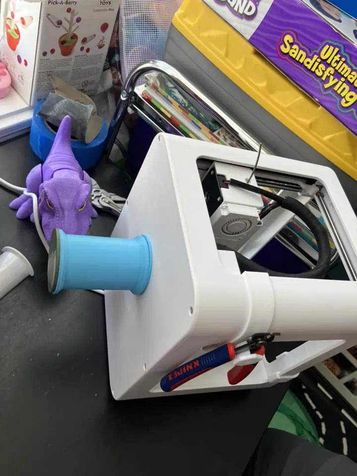 Mình đã thiết kế một giá đỡ cuộn nhựa 1kg cỡ lớn dành cho máy in Toybox Alpha 2, và nó hoàn toàn có thể in được trên bàn in nhỏ của dòng Alpha 2 (và cả Alpha 3 hiện nay). Sau vài lần giá đỡ cũ bị gãy và không hoạt động tốt với các lõi giấy (gây áp lực lên bánh răng đùn nhựa), mình đã dành khoảng 16 tiếng để thiết kế cực kỳ kỹ lưỡng chiếc giá đỡ sử dụng vòng bi này nhằm giảm ma sát, giúp in các cuộn nhựa 1kg lớn hơn. Các file STL được slice với support tối thiểu nhưng ưu tiên đặt nằm ngang để đảm bảo độ cứng cáp cho cuộn 1kg. Một vài chi tiết cần để infill cao để đảm bảo sự chắc chắn và hiệu quả.