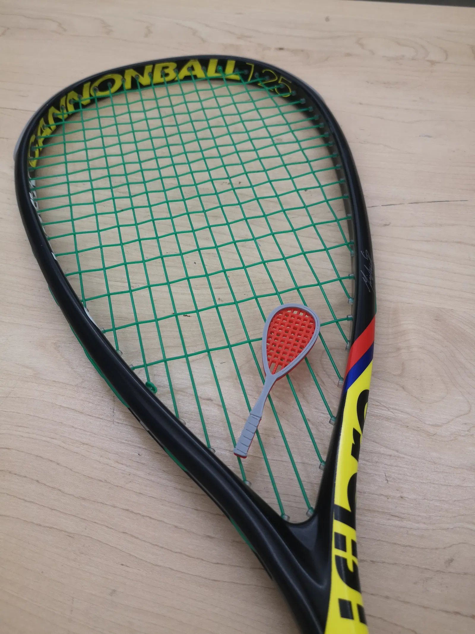 Mô hình móc khóa vợt Squash thu nhỏ với thiết kế kiểu open throat hoặc teardrop. Sản phẩm được lấy tỉ lệ từ mẫu vợt Tecnifibre Carboflex Cannonball 125, phù hợp để in nhiều màu hoặc in tách rời các chi tiết.