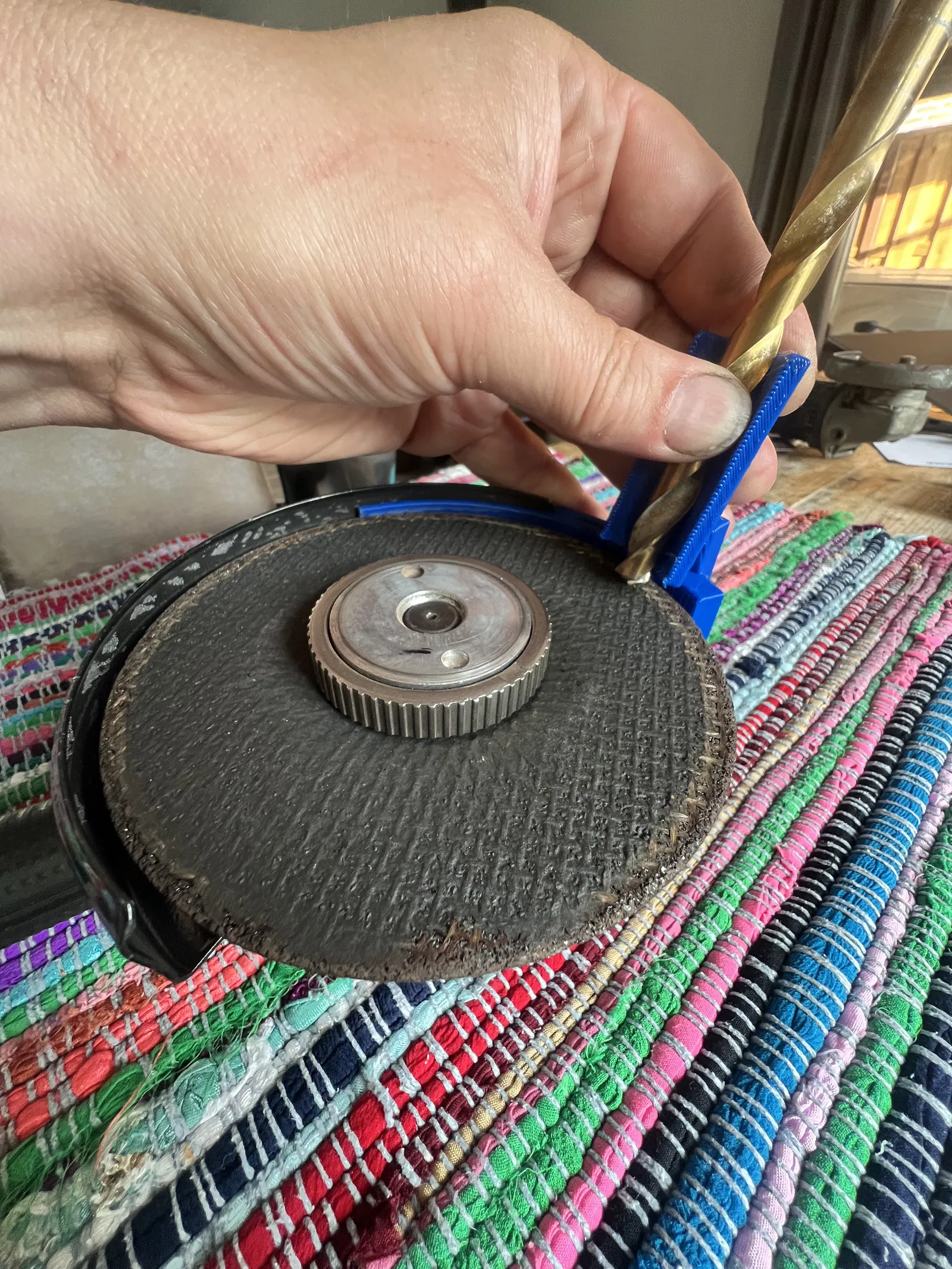 Dụng cụ hỗ trợ mài mũi khoan cực tiện lợi, chỉ cần gắn vào phần bảo vệ của máy mài góc 125mm. Một giải pháp đơn giản giúp bạn tự tay mài lại các mũi khoan cũ mà không cần thêm phụ kiện cầu kỳ.