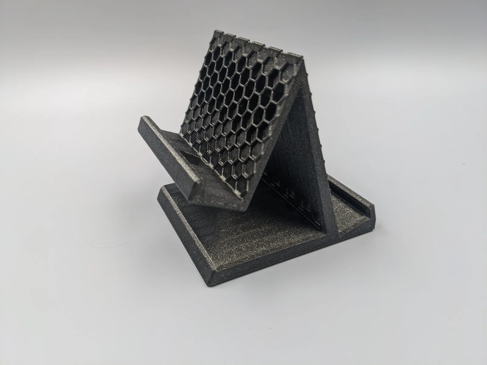 Chà, lý do đầu tiên là cái này sử dụng vật liệu ít hơn đáng kể so với những cái khác có định dạng tương tự, và do đó in nhanh hơn. Nó cho phép hai góc lắp đặt khác nhau và có một lỗ để sạc điện thoại của bạn trên giá đỡ. Mặc dù giá đỡ này nhỏ hơn một chút so với hầu hết, nhưng nó vẫn giữ an toàn cho các điện thoại thông minh khá lớn.