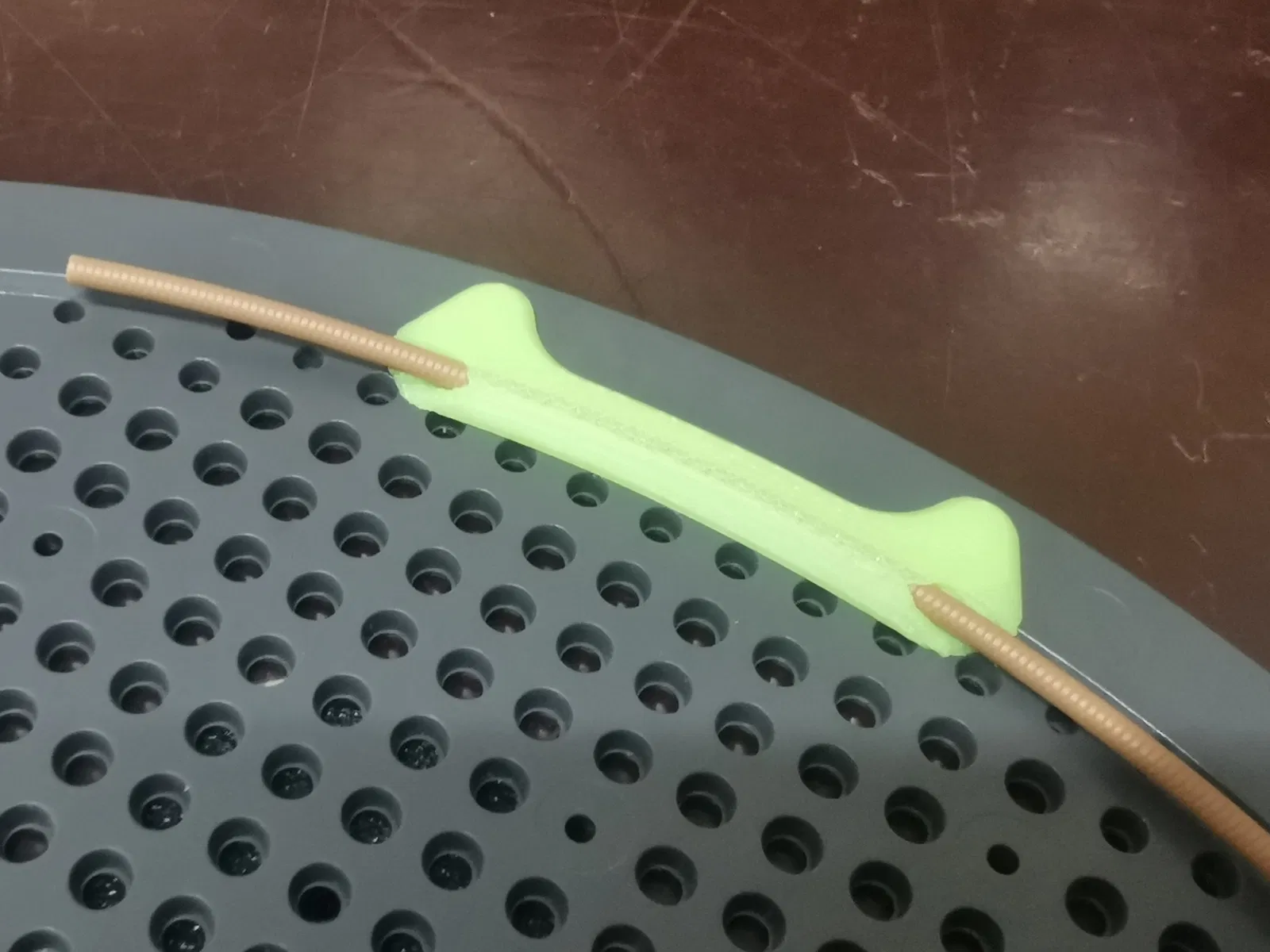 #### Đặc điểm Gắn khớp vào các lỗ có sẵn trên cuộn nhựa dùng lại được Không cần ốc vít hay phụ kiện Không bị nhô ra ngoài cuộn nhựa In không cần support Độ dày bên trong cực mỏng chỉ 2mm Có thể gắn cố định (nhưng tháo ra cũng rất dễ dàng) #### Hướng dẫn in Bao gồm các cấu hình in cho máy Bambu Lab Sử dụng bất kỳ chất liệu nào bạn thích, nhưng nếu cuộn nhựa dùng trong máy sấy nhựa, hãy chọn chất liệu có khả năng chịu nhiệt phù hợp. PETG dùng tốt đến 70°C; nếu nhiệt độ cao hơn, hãy cân nhắc ASA, ABS, hoặc PA. Dung sai chặt chẽ: Để có kết quả tốt nhất, hãy in với chiều cao lớp 0.10mm, đặt nằm phẳng trên bàn in với phần chốt hướng lên trên. Cấu trúc bù trừ cầu (bridge compensation) được tích hợp sẵn để đạt chất lượng in tối ưu. #### Lắp ráp Sau khi in, kiểm tra xem có sợi nhựa thừa nào kẹt trong khe hở không. Đảm bảo sợi nhựa có thể đi qua dễ dàng bằng cách dùng một đoạn dây nhựa cứng để thông đường dẫn. Sau khi thông thoáng, nhẹ nhàng nhấn kẹp song song vào các lỗ. Bạn có thể dùng kìm hoặc nhấn chặt vào cạnh bàn để cố định.