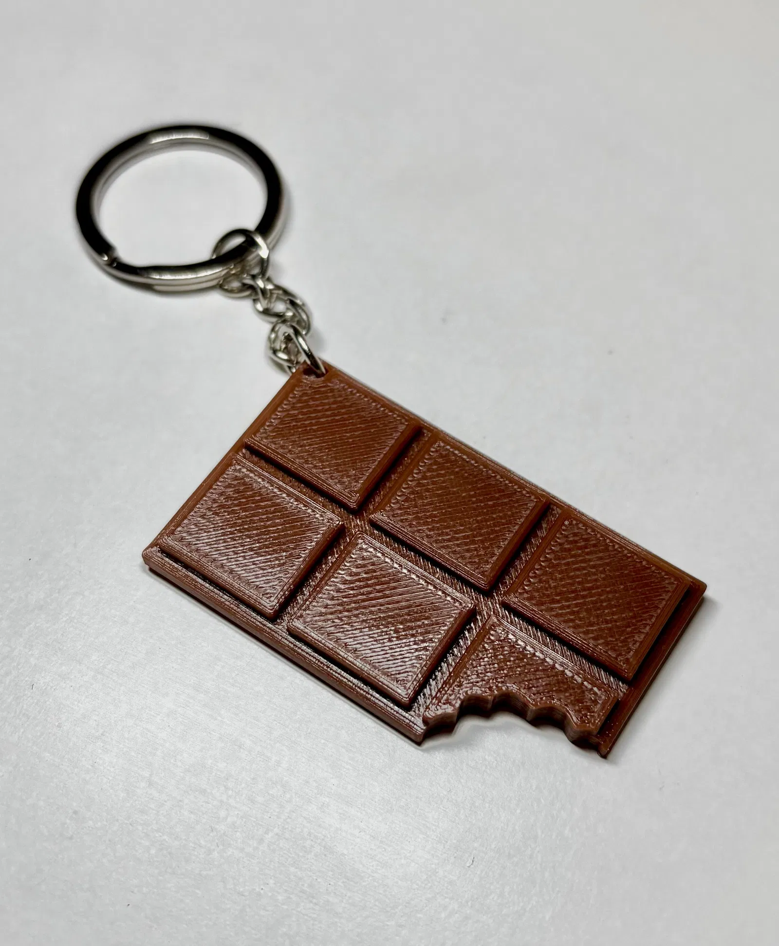Bạn đang tìm kiếm một phụ kiện độc đáo cho chùm chìa khóa của mình? Hãy thử in ngay mẫu móc khóa thanh sô-cô-la cắn dở đầy sáng tạo này. Với thiết kế mô phỏng chân thực như một miếng sô-cô-la thật, món đồ này chắc chắn sẽ khiến mọi người xung quanh phải trầm trồ. Mẫu in 3D này cực kỳ dễ in, không cần hỗ trợ (support), giúp bạn tiết kiệm tối đa thời gian và vật liệu. Chỉ cần sử dụng nhựa PLA màu nâu, bạn sẽ có ngay một món quà nhỏ xinh, bắt mắt để trang trí túi xách, balo hoặc làm quà tặng ý nghĩa cho bạn bè và những người yêu thích sự ngọt ngào. Đây là dự án nhỏ hoàn hảo cho người mới bắt đầu học in 3D.