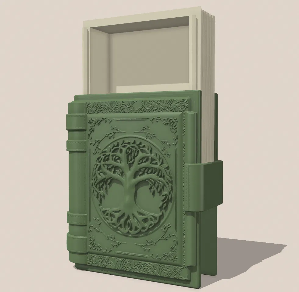 Cuốn sách trang trí độc đáo dành cho game DND, tích hợp ngăn kéo tiện lợi để đựng xúc xắc. Phiên bản v1.2 đã được tối ưu hóa các khe cắm ngăn kéo và bổ sung thêm tùy chọn không ray trượt để bạn dễ dàng in ấn hơn.