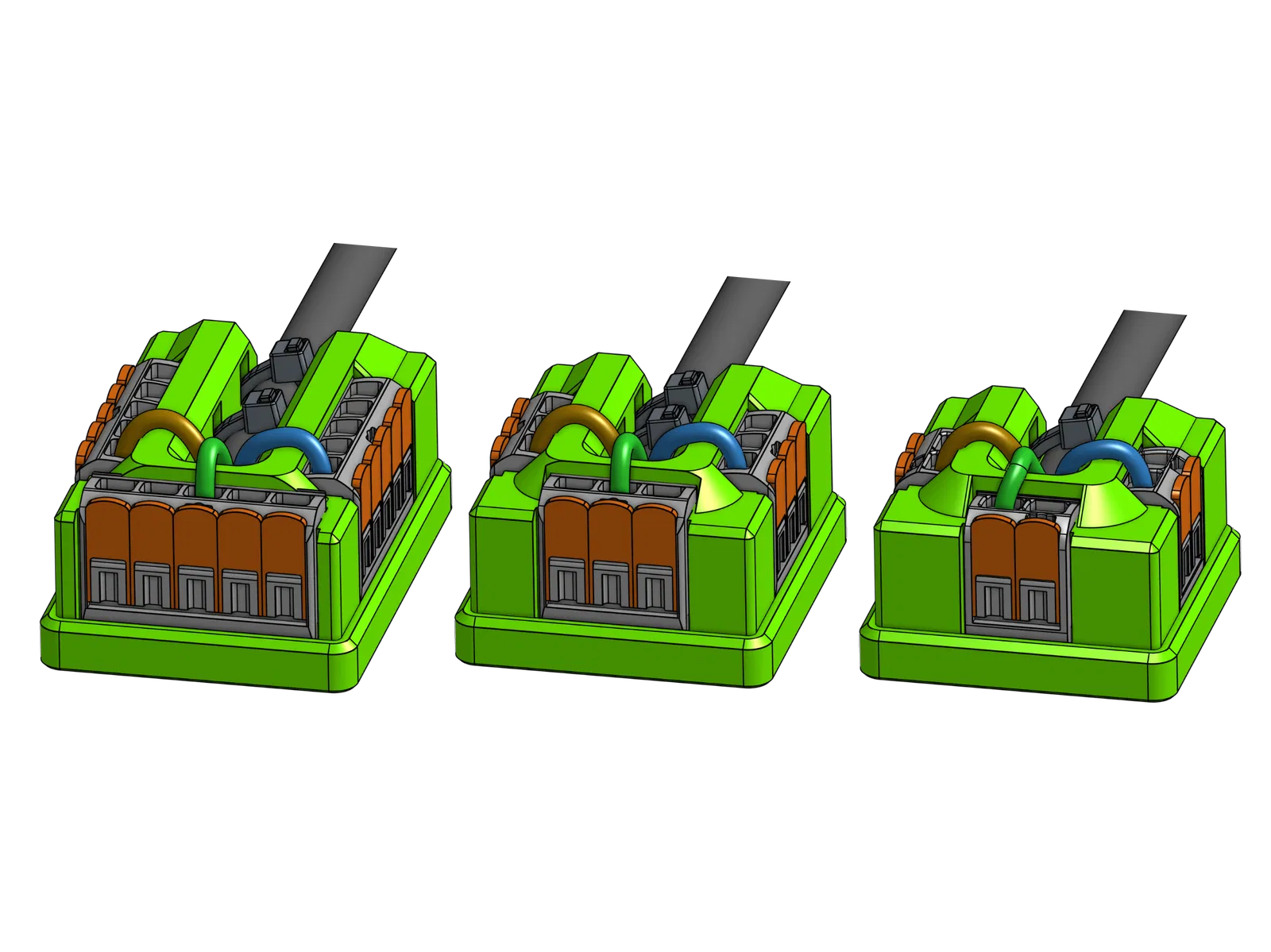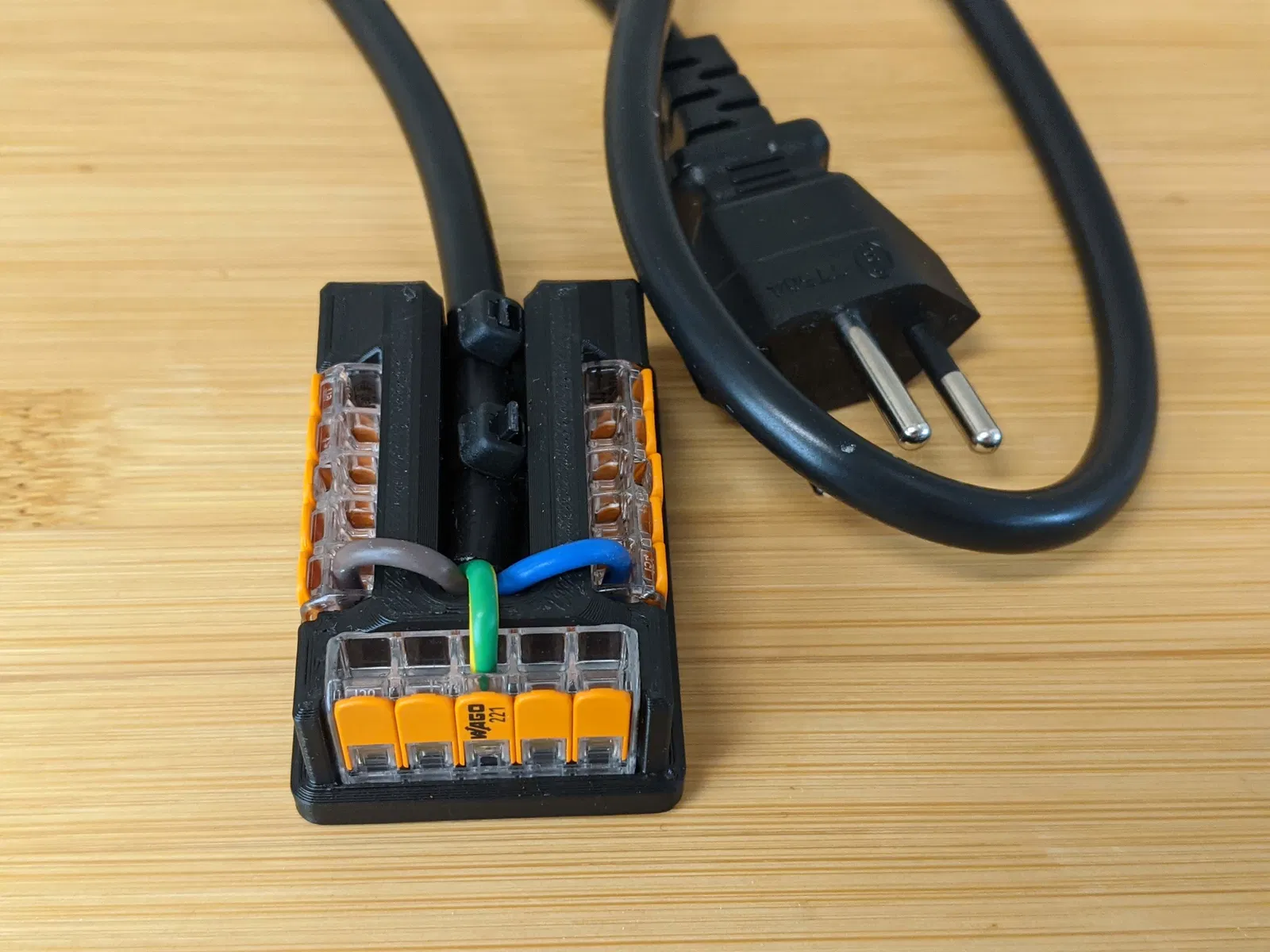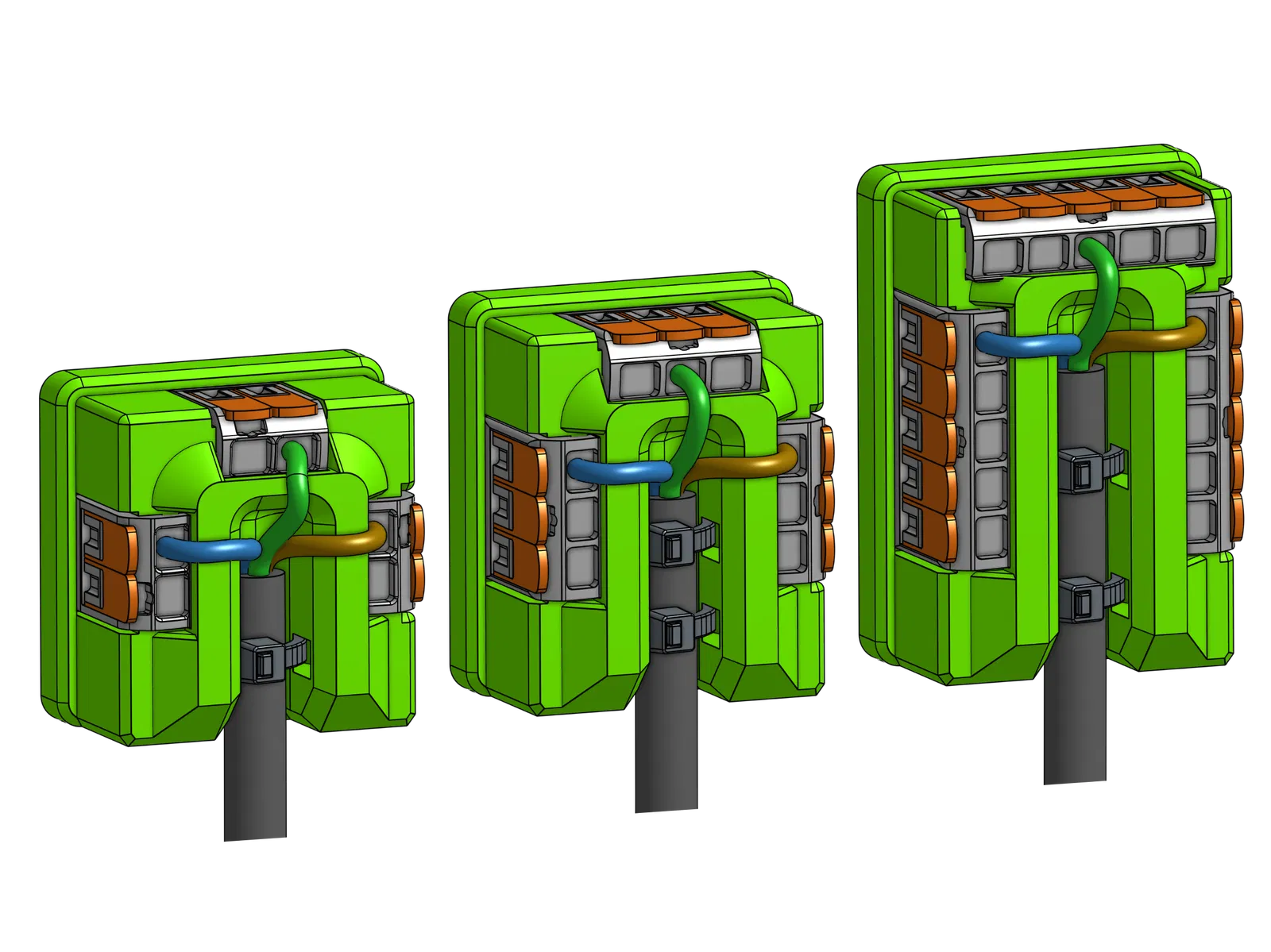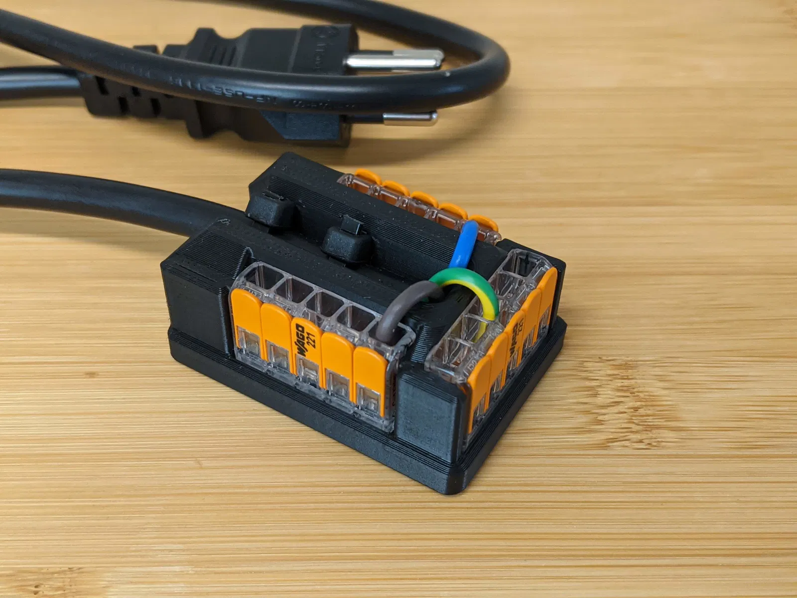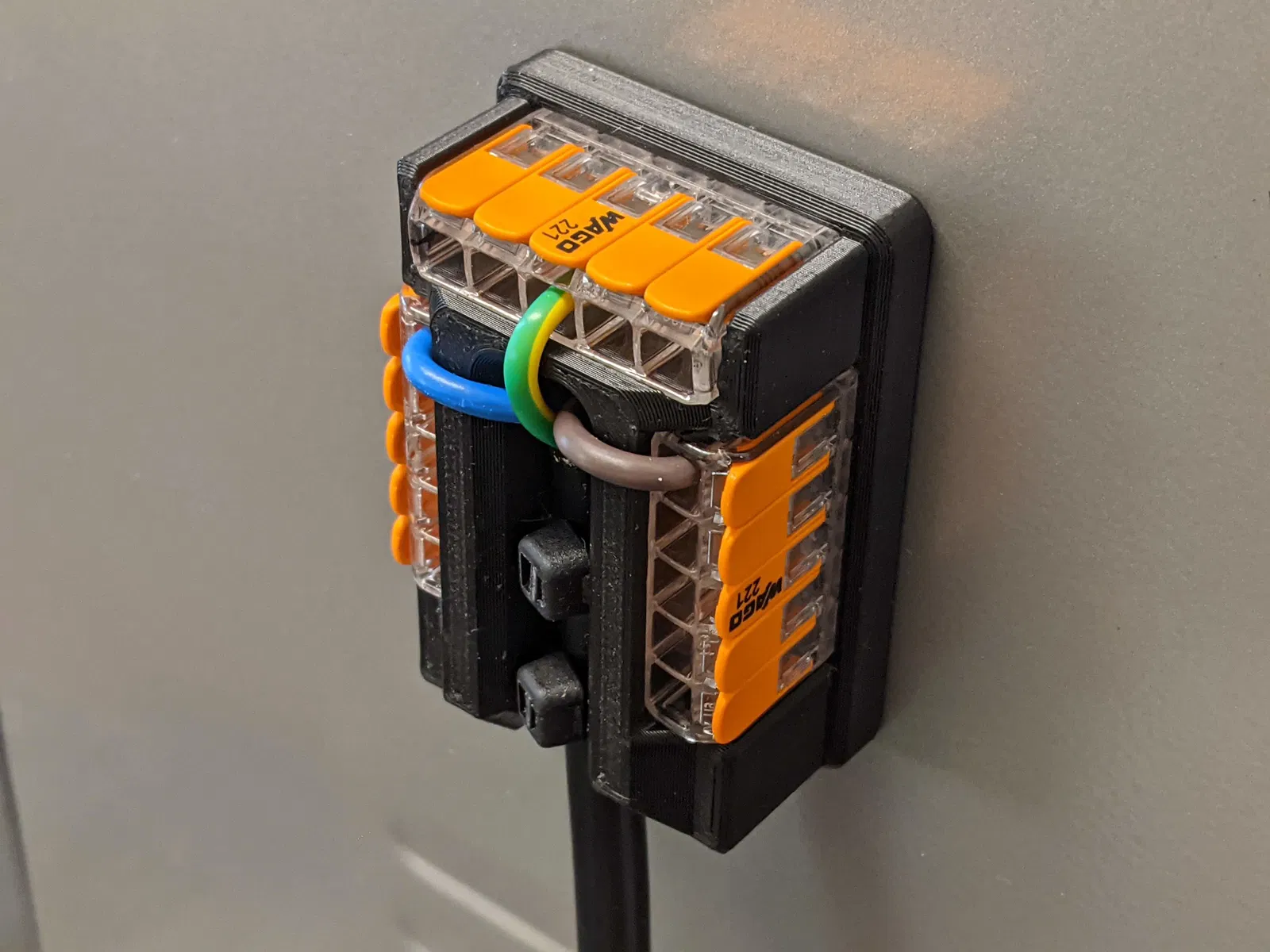 Đây là khối phân phối điện sử dụng các đầu nối Wago 221. Sản phẩm đi kèm với nhiều tùy chọn lắp đặt khác nhau, và mẫu cơ bản có sẵn định dạng STEP và STL để mọi người dễ dàng tùy biến hoặc tự làm giá đỡ riêng.