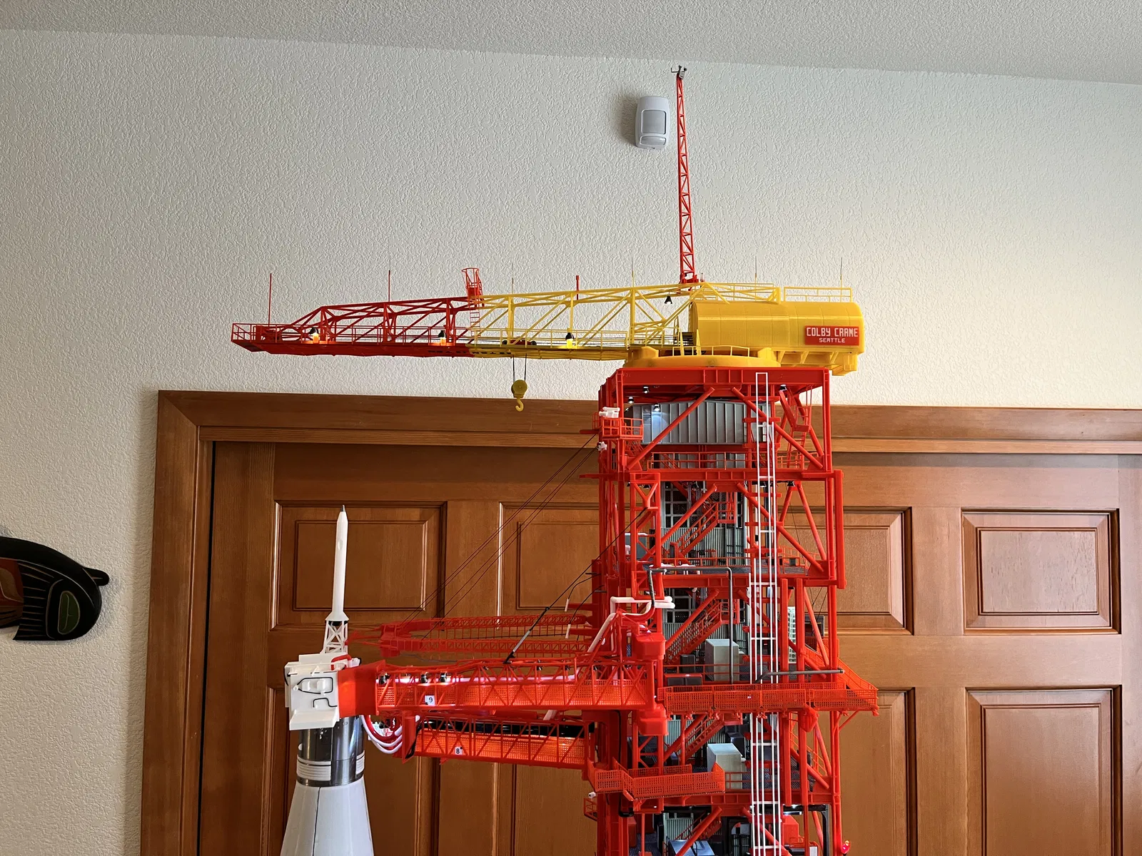 Mô hình cần cẩu Colby gắn trên đỉnh tháp Apollo Umbilical Tower. Thiết kế hỗ trợ tự động hóa bằng động cơ bước và Arduino, đi kèm tài liệu hướng dẫn lắp ráp chi tiết cho người chơi mô hình chuyên nghiệp.