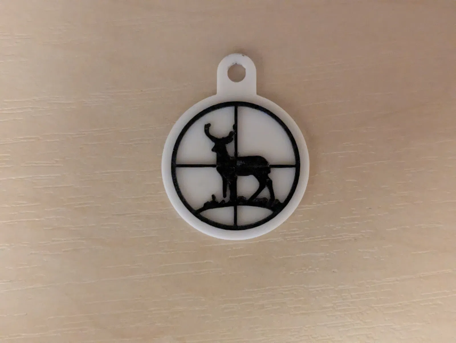Móc khóa nhỏ được thiết kế để in bằng 2 màu. Nếu bạn không có hệ thống in đa vật liệu (multi material), bạn có thể thêm lệnh tạm dừng (pause) trong phần mềm slicer để thay đổi sợi nhựa. Với chiều cao lớp in 0.08mm, hãy đổi màu ở lớp thứ 19. Với chiều cao lớp in 0.2mm, hãy đổi màu ở lớp thứ 9. Nếu bạn muốn in với chiều cao lớp khác, hãy kiểm tra xem hình chú nai bắt đầu xuất hiện ở lớp nào và thêm lệnh tạm dừng tại đó. Mình cũng khuyên bạn nên bật tính năng 'ironing' cho các bề mặt phía trên để sản phẩm trông đẹp hơn.
