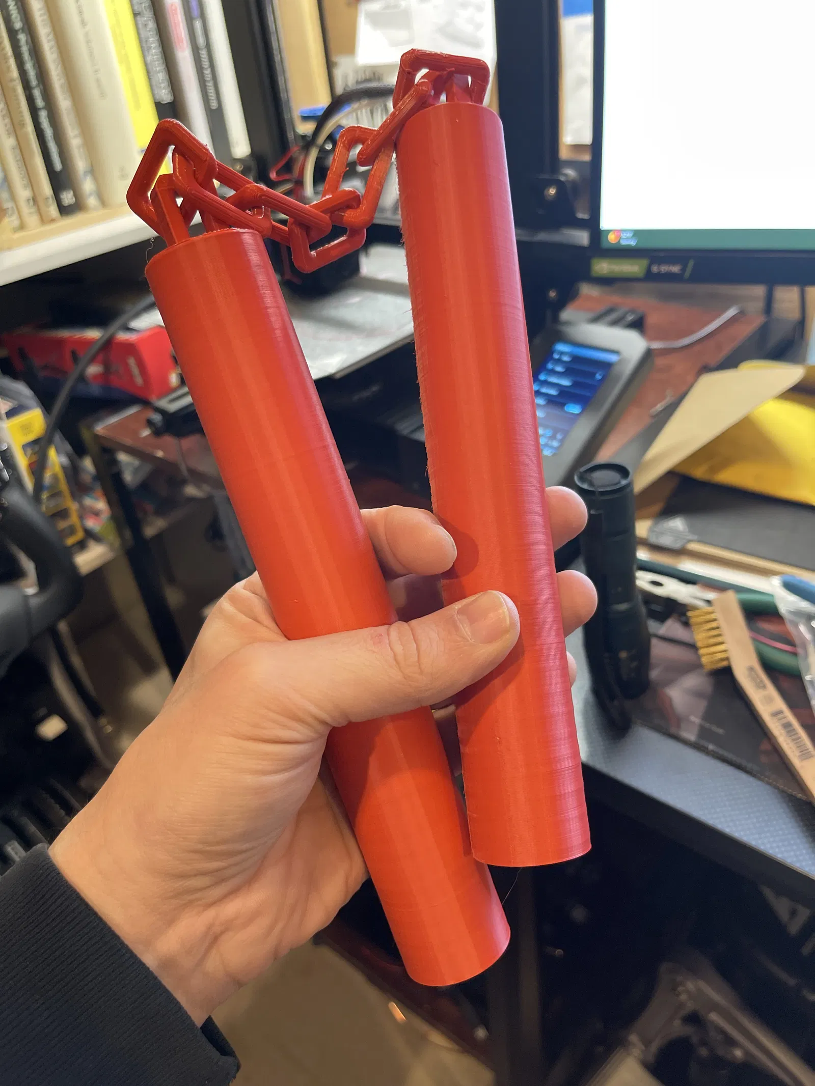Nếu bạn đang tìm kiếm một dự án in 3D thú vị, nhanh chóng và không đòi hỏi quá trình lắp ráp phức tạp, thì mô hình côn nhị khúc (nunchucks) này chính là lựa chọn hoàn hảo. Đây là một thiết kế dạng "print-in-place", nghĩa là toàn bộ phần thân côn và dây xích kết nối đều được in ra cùng một lúc. Bạn chỉ cần tháo mô hình khỏi bàn in, kiểm tra các khớp nối là đã có ngay một món đồ chơi độc đáo để trưng bày hoặc phục vụ nhu cầu cosplay.
