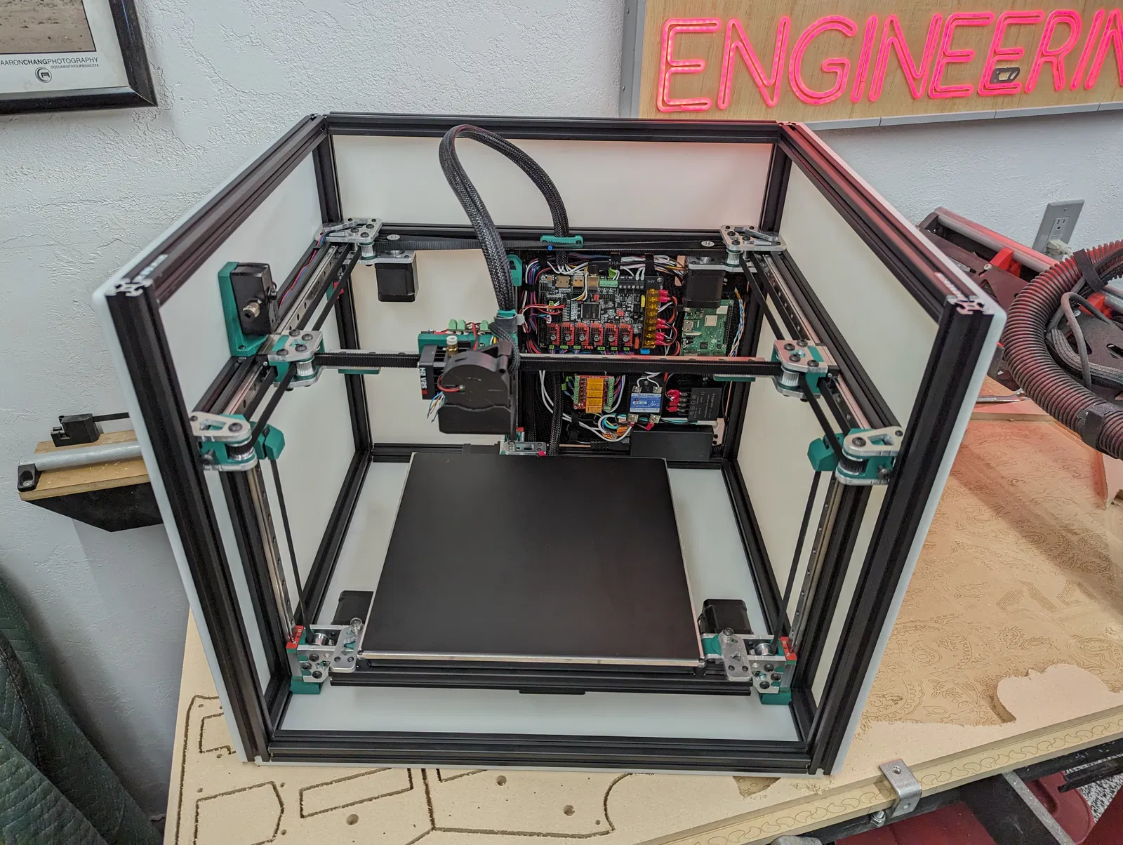 Phiên bản thứ 5 của máy in 3D V1 Engineering. Cấu trúc CoreXY kết hợp khung kim loại và linh kiện in 3D. Đây là dự án dành cho người có trình độ lắp ráp từ nâng cao đến chuyên gia, đòi hỏi sự kiên nhẫn và kiến thức về phần cứng lẫn firmware.