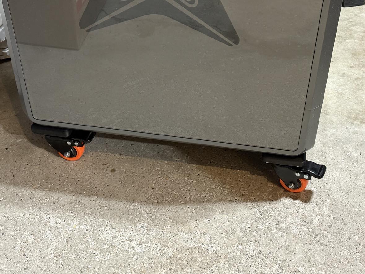 Máy nặng quá nên mình thiết kế bộ đế này để gắn thêm bánh xe 2 inch cho Creality K2 Plus. Cần in 2 cái gốc và 2 cái lật gương để lắp đủ 4 góc. Thiết kế cứng cáp, chịu lực tốt, giúp việc di chuyển máy in dễ dàng hơn nhiều.