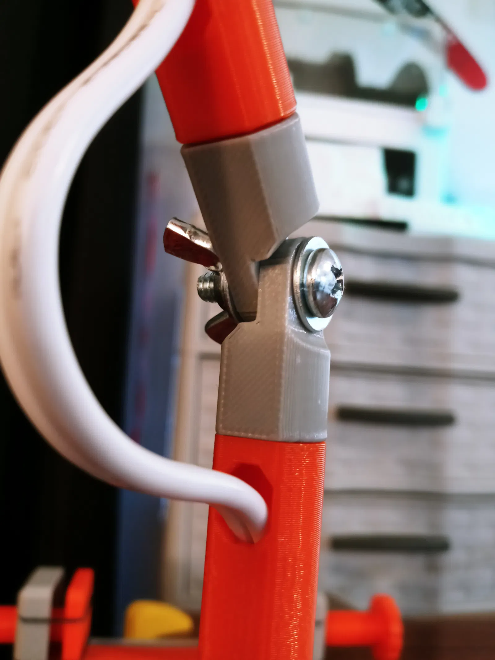 Mẫu đèn bàn đơn giản, linh hoạt với thiết kế C-Clamp tiện lợi, tích hợp 4 khớp khuỷu và 1 khớp cầu giúp điều chỉnh hướng sáng dễ dàng. Dễ in, ít support.