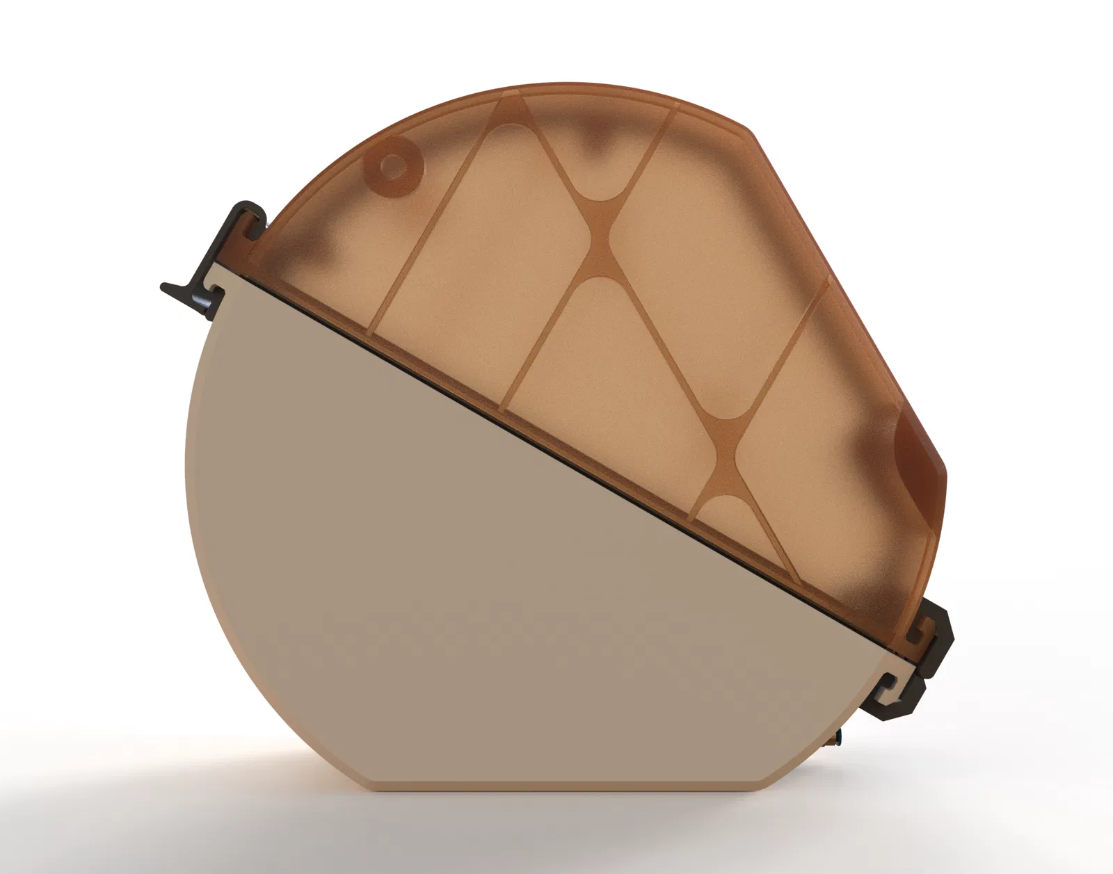 - Dễ in, tiết kiệm vật liệu tối đa, dùng PETG (PLA cũng là một lựa chọn) và TPU, cộng thêm 3 ốc vít cùng đai ốc để tạo độ kín cần thiết.