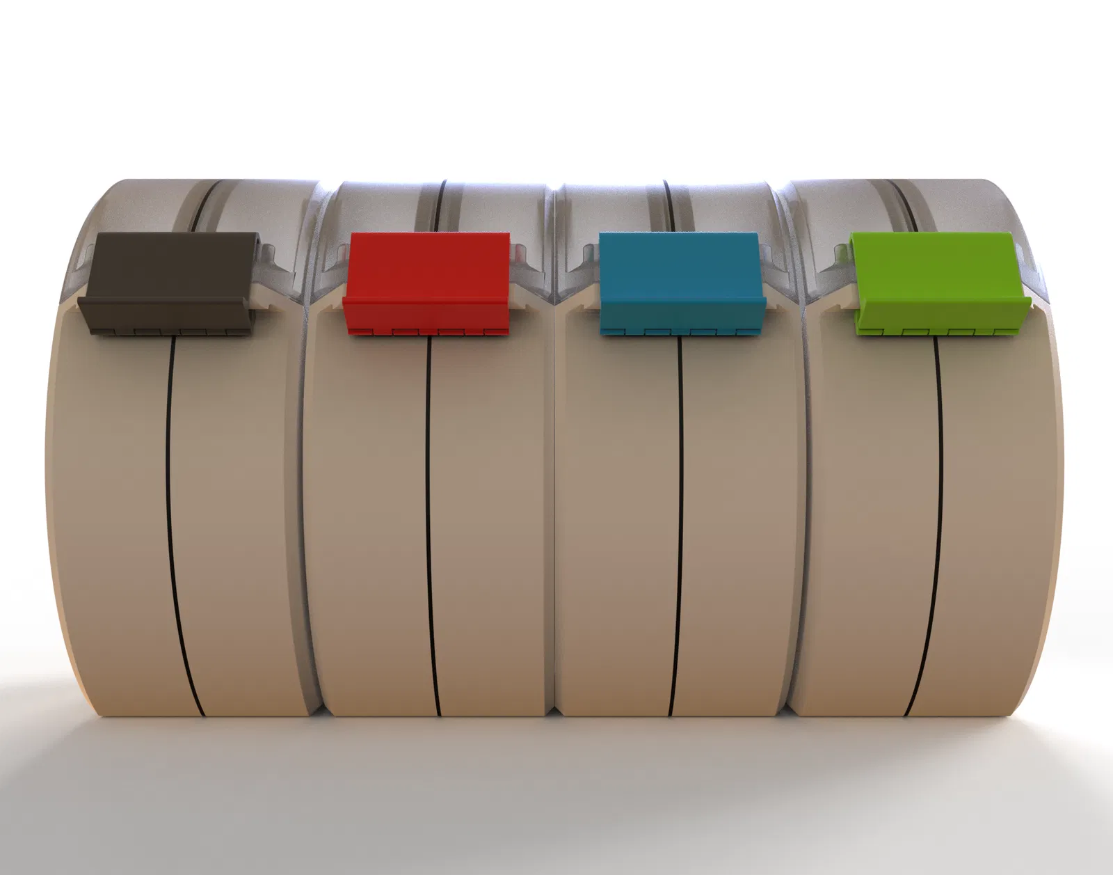 Một số bộ phận có tính năng đặc biệt mà bạn có thể cấu hình như kẹp đóng nắp, nơi bạn có thể thay đổi nhãn văn bản và màu sắc để khớp với loại nhựa.