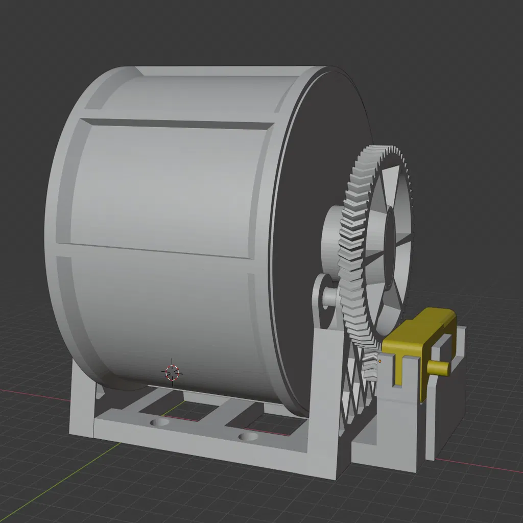 Mình tạo ra mô hình này bằng Blender vì đó là công cụ mình quen dùng. Các bánh răng được tạo bằng một plugin trên Blender, còn ren bên trong thùng chứa là mình làm thủ công. Nếu dùng Fusion 360 thì có lẽ chỉ mất 10 giây, nhưng mình thì lười học phần mềm mới lắm.