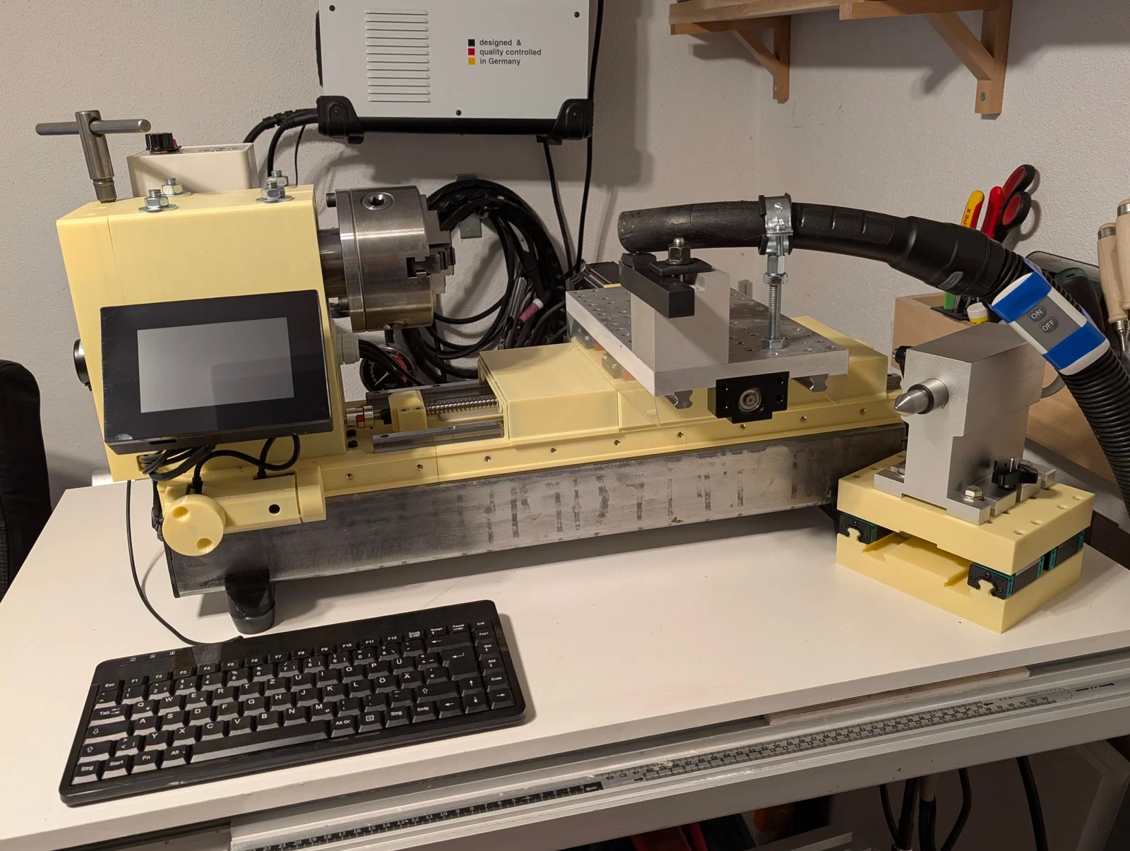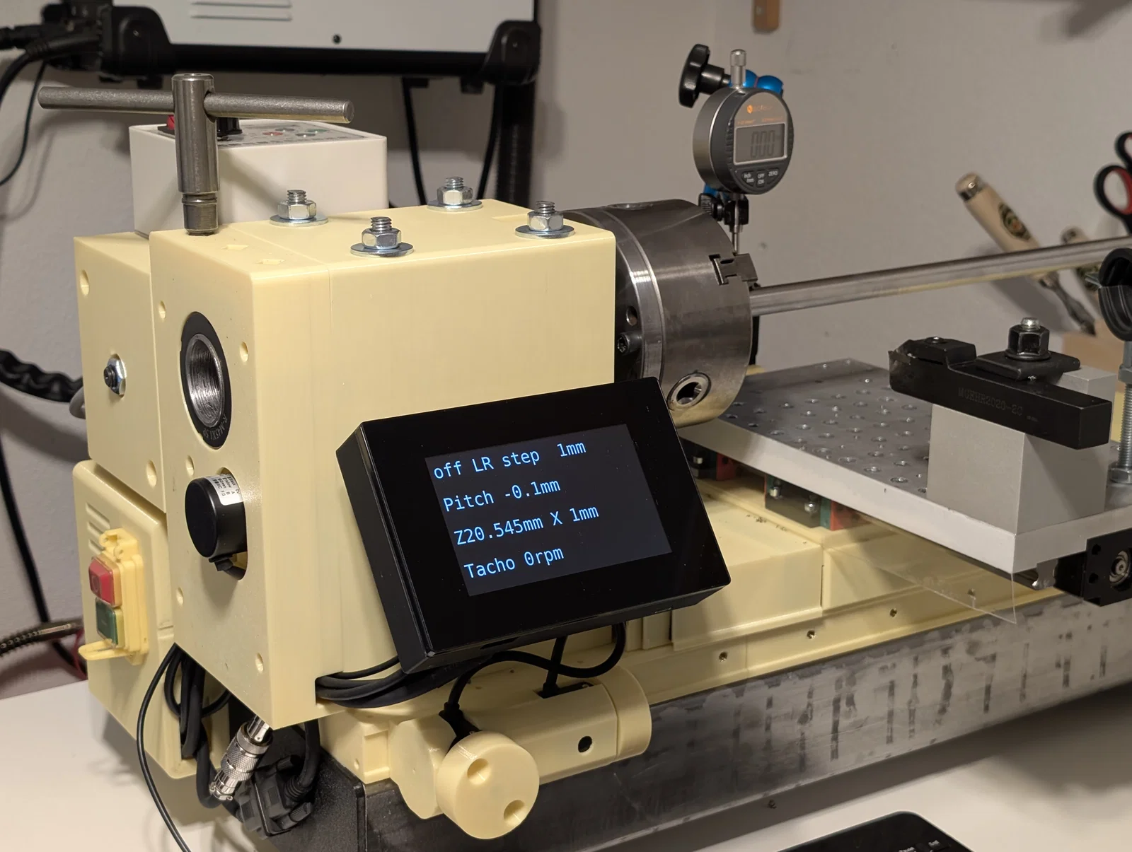 Máy tiện mini để bàn dạng lắp ráp, mã nguồn mở, cho phép gia công kim loại, gỗ và nhựa.