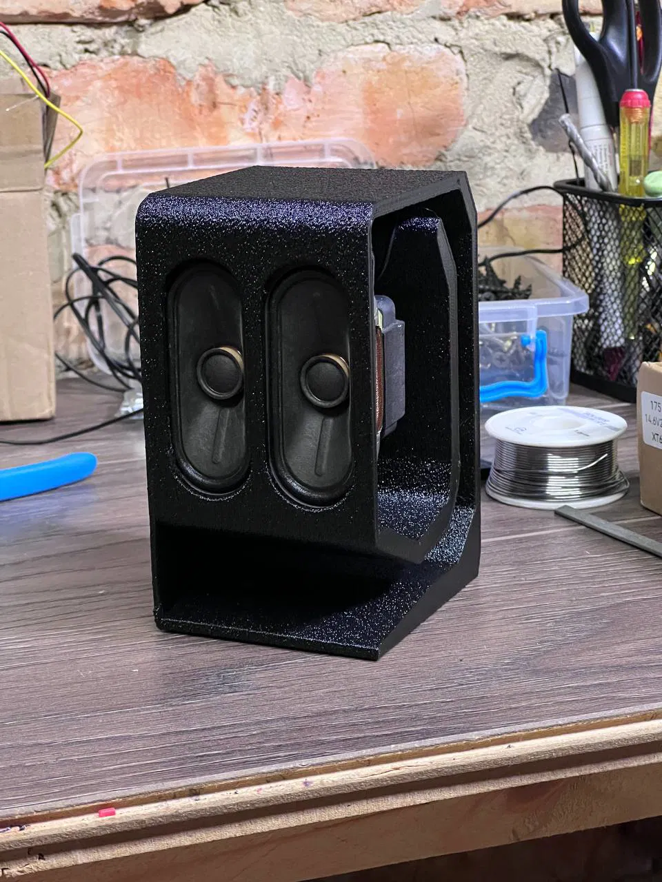 Hộp để làm loa nghe nhạc tận dụng từ hai loa lấy ra từ TV cũ.