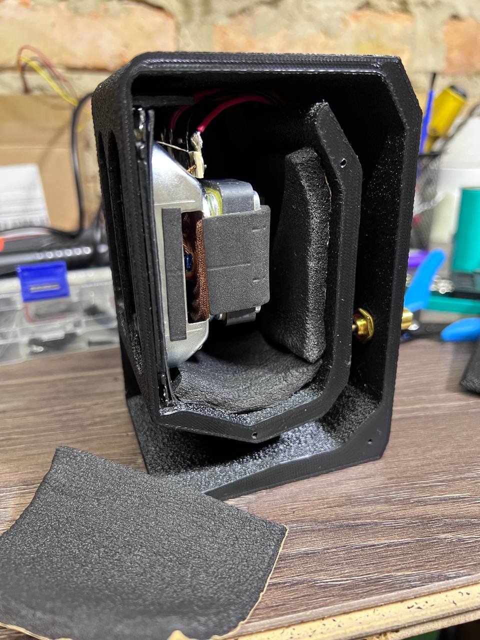Khoang chứa loa cần được lấp đầy hoàn toàn (trừ phần ống thông hơi) bằng vật liệu mềm hoặc mút xốp để cải thiện chất lượng âm thanh tốt nhất. (!!!)