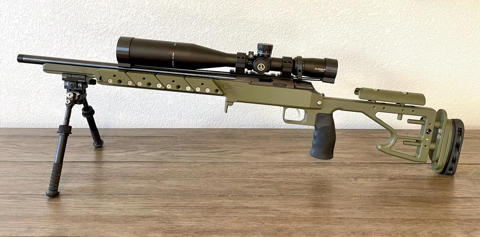 Tôi đang sử dụng ống ngắm Athlon Ares BTR 4.5-27x50 với một tấm che nắng và các vòng ngắm thấp trên một đường ray Picatinny nghiêng. Điều này khiến cho cạnh trước của tấm che nắng rất gần với nòng súng.