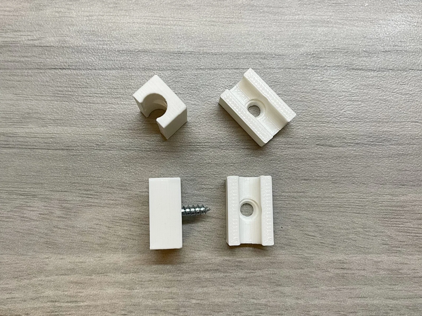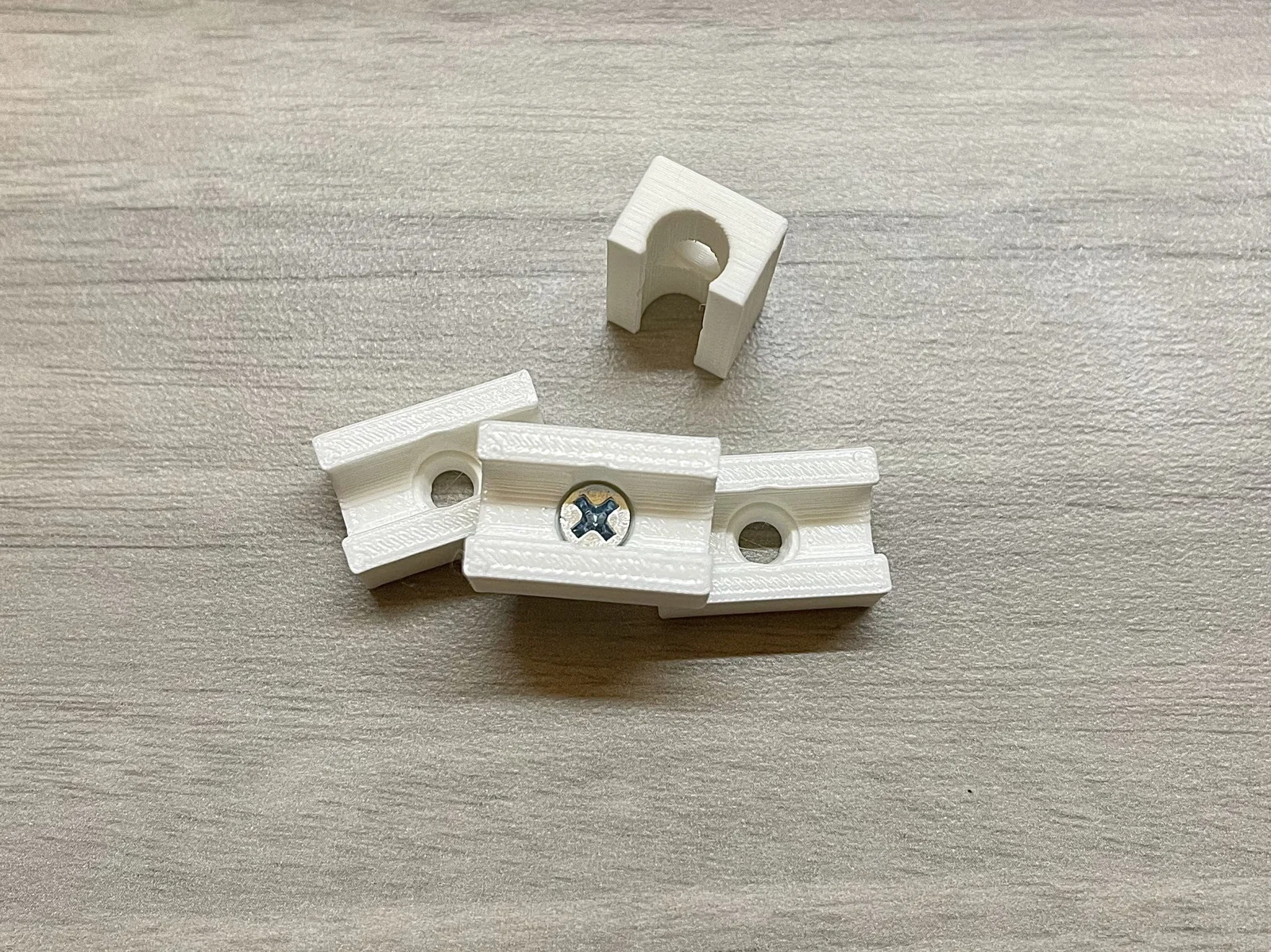 Tôi đã thiết kế một vài biến thể của các kẹp gắn có thể được gắn vào ván dăm bằng vít Phillips đầu phẳng #6. Sau đó, ống có thể được kẹp vào giá đỡ.