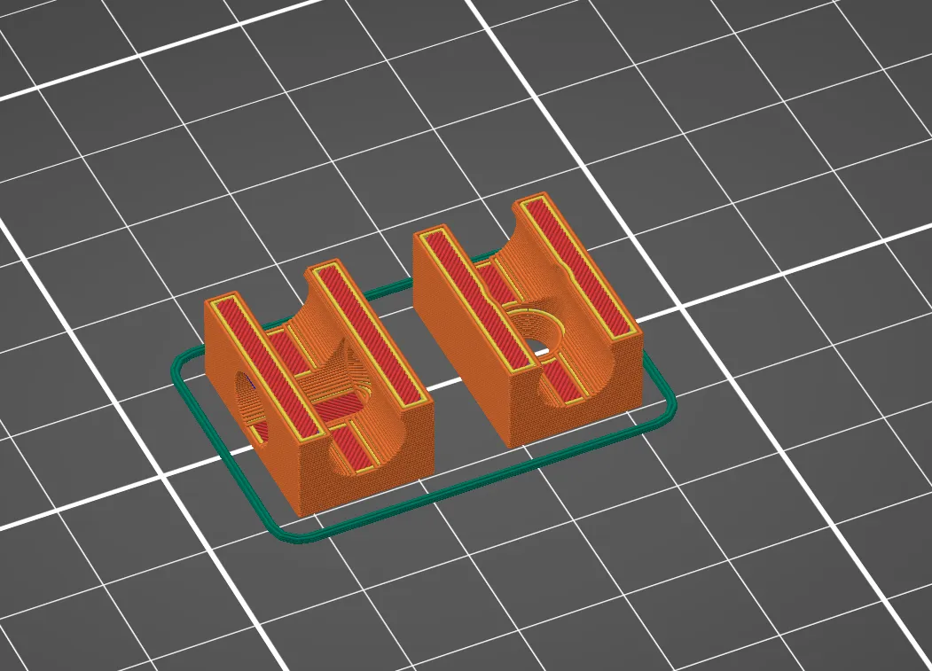 Tôi đã in của tôi bằng PLA. Không cần hỗ trợ, nếu được đặt đúng cách (xem ảnh chụp màn hình).