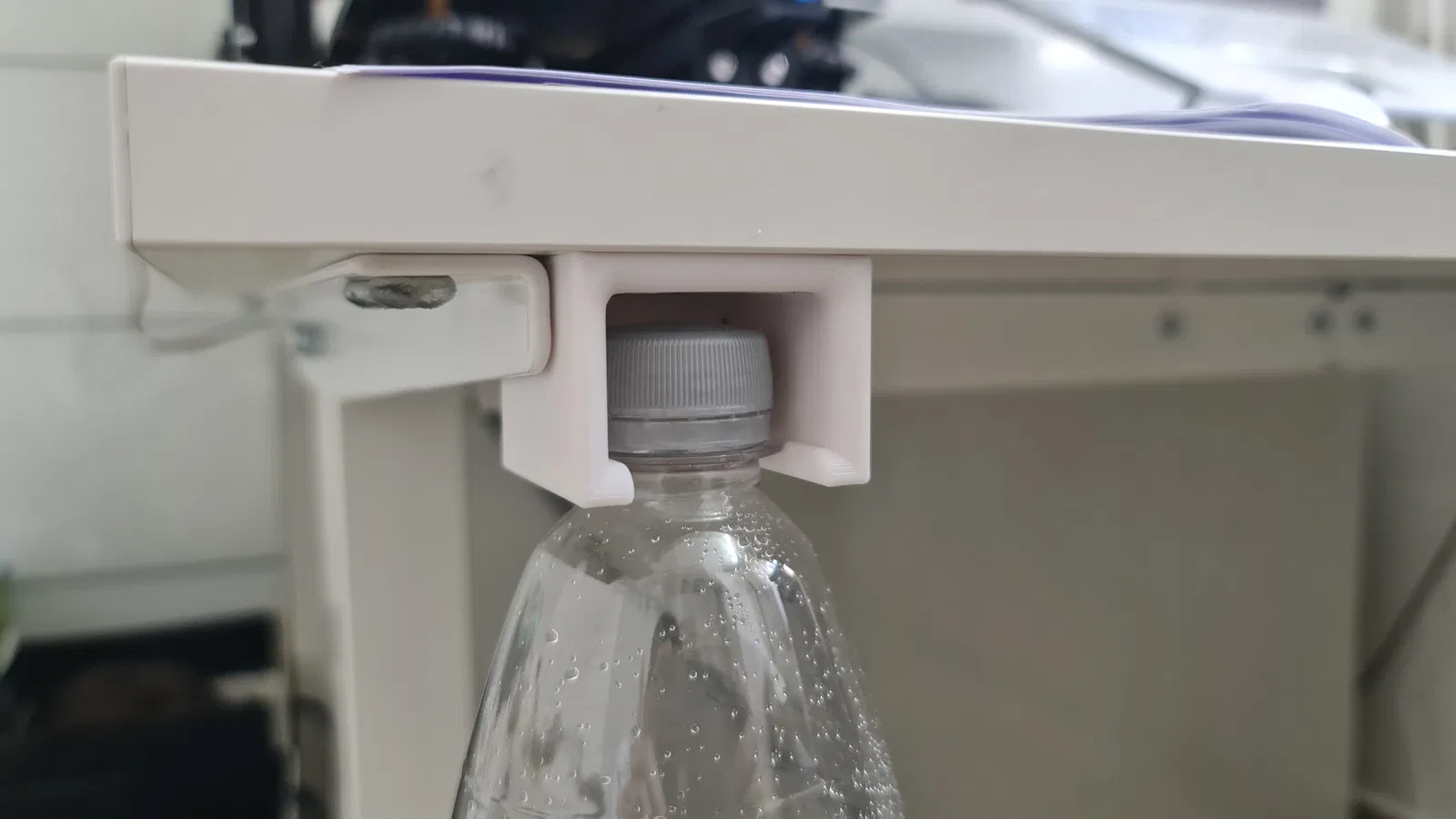 Mẫu giá đỡ thông minh giúp bạn treo bình nước gọn gàng ngay dưới gầm bàn, giải phóng không gian mặt bàn làm việc. Thiết kế đơn giản, dễ lắp đặt bằng vít gỗ, in nhanh mà không cần dùng support, cực kỳ tiện lợi cho góc làm việc của bạn.