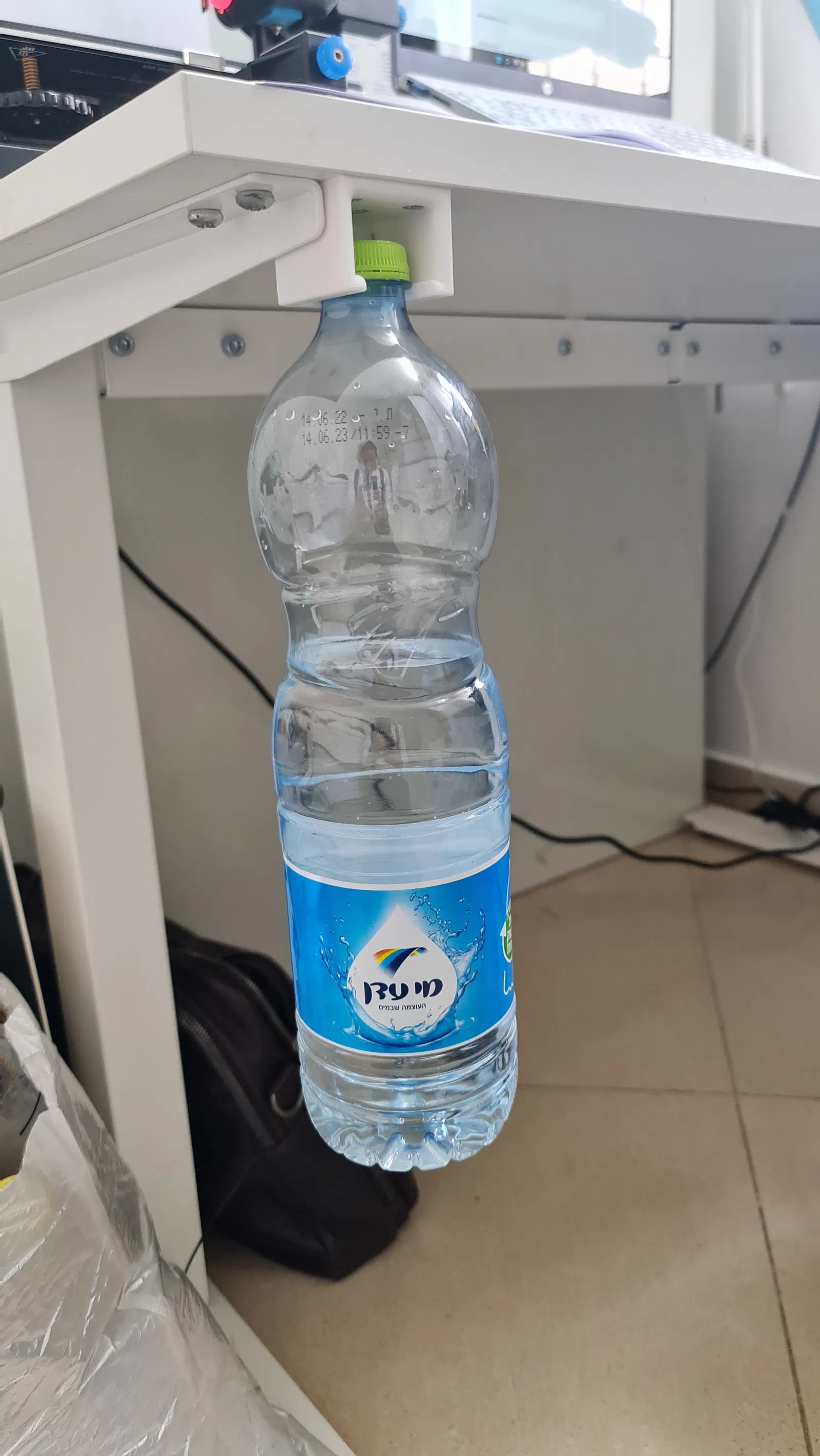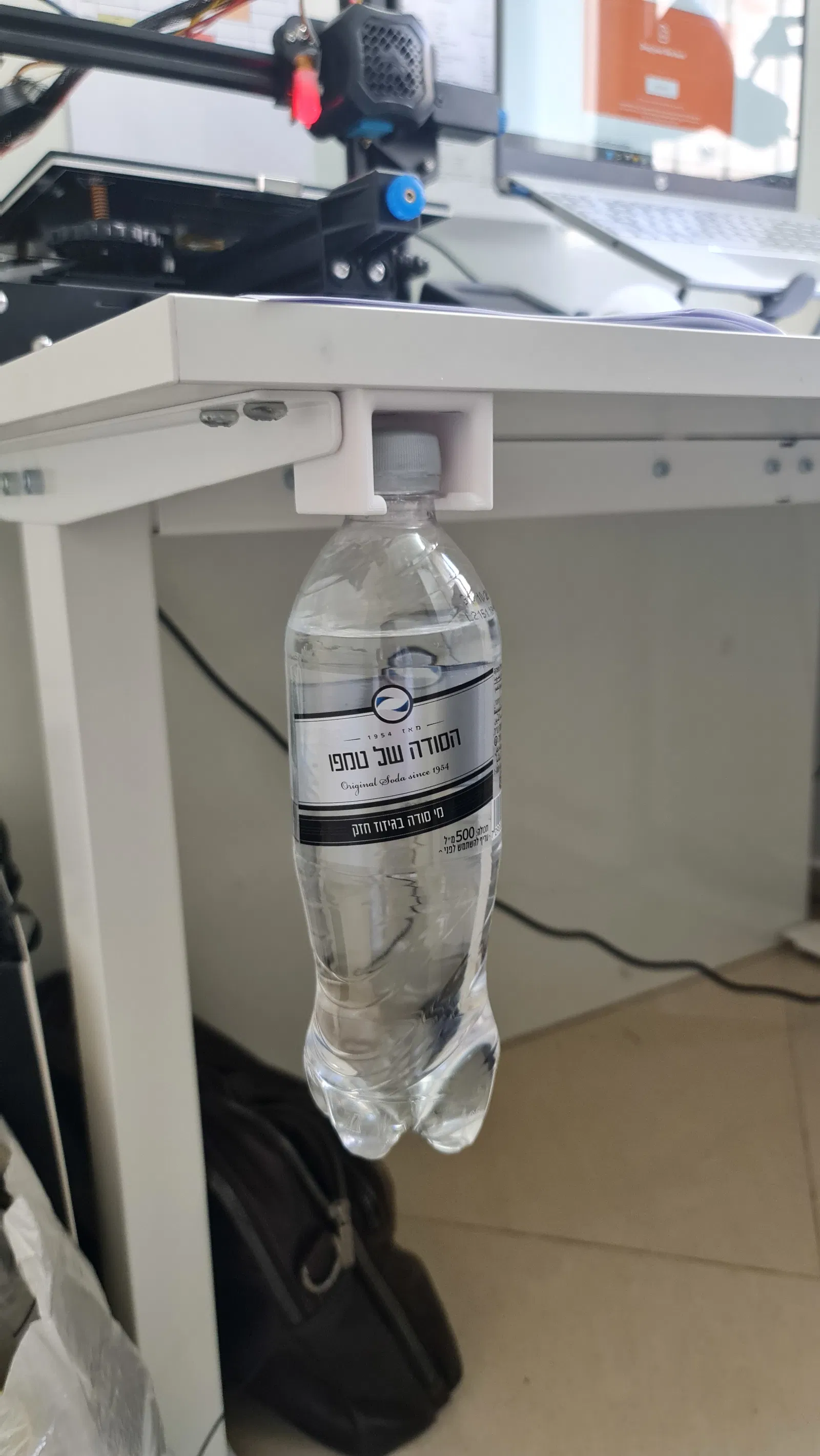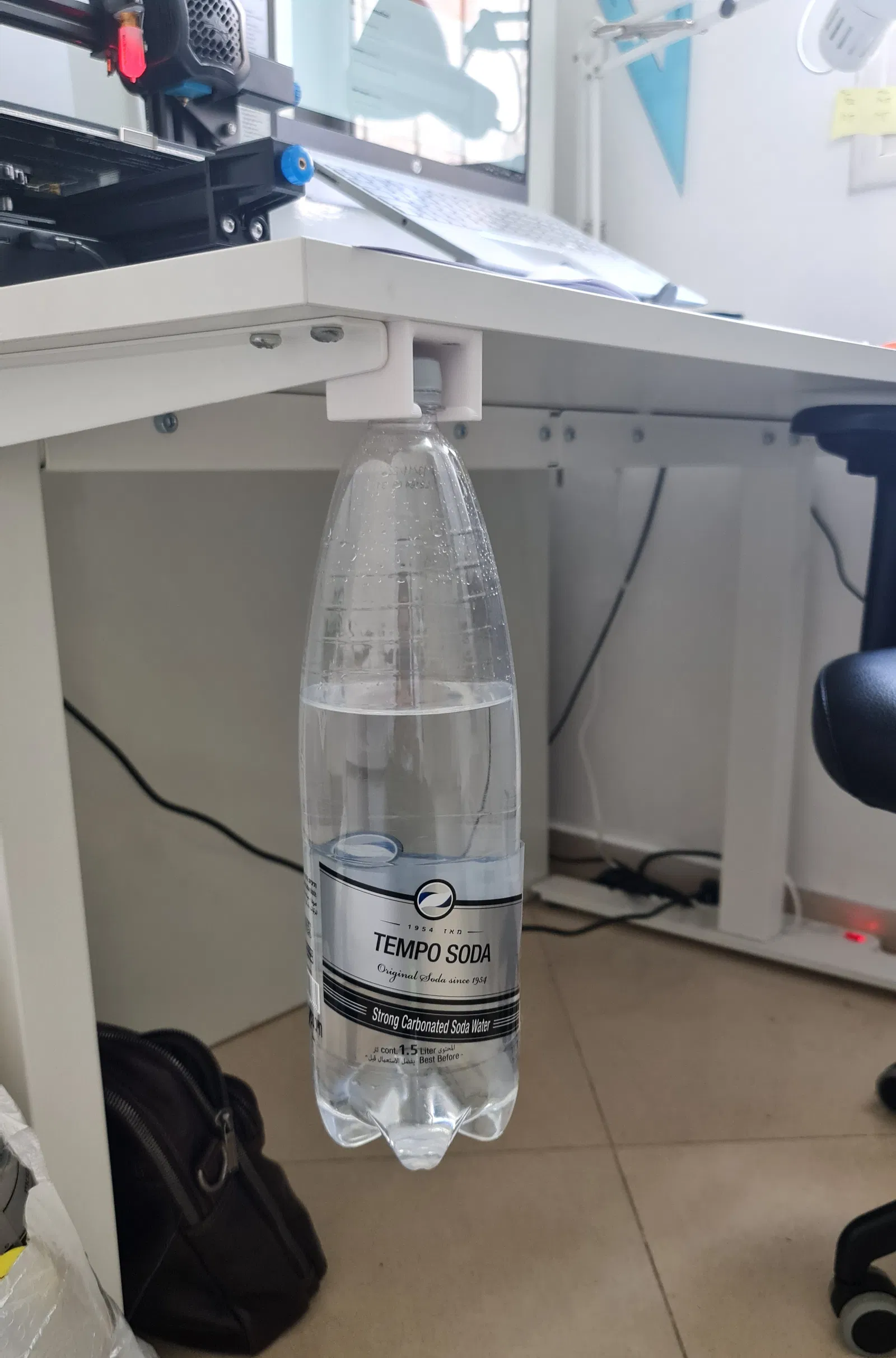 Cái giá đỡ bình nước này giúp bạn treo bình dưới mặt bàn (ví dụ vậy) để tiết kiệm diện tích trên bàn làm việc.