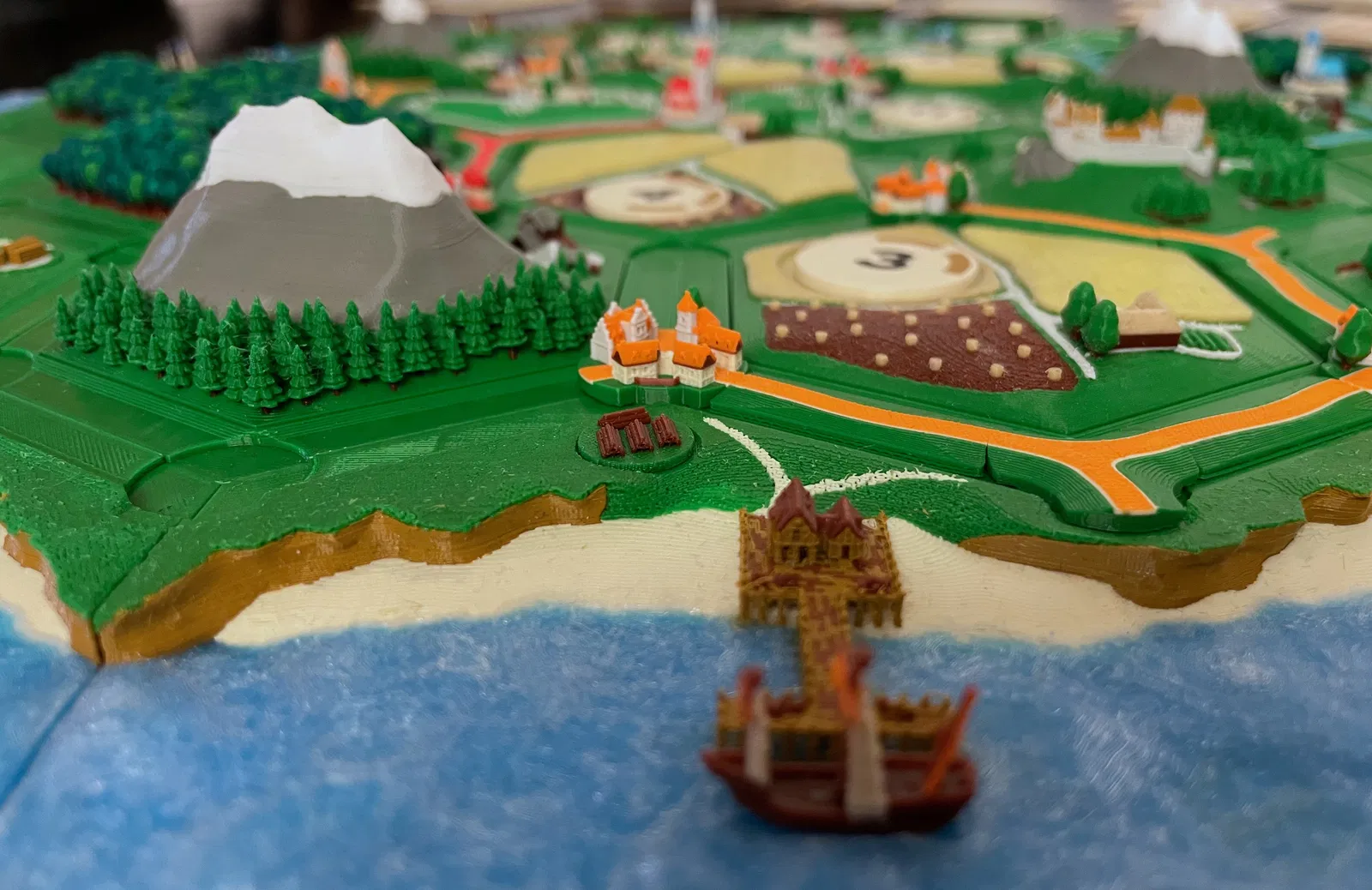 Các vị trí giao lộ, khu định cư và tòa thành được in với vòng hỗ trợ (support ring). Bạn cần bẻ phần này ra. Mặt dưới các phần mở rộng có thể cần dùng dao mổ để làm sạch nhựa thừa. Nếu các lớp bị dính quá chặt, bạn có thể hạ thấp vòng hỗ trợ 0,1 mm trong tệp 3mf.