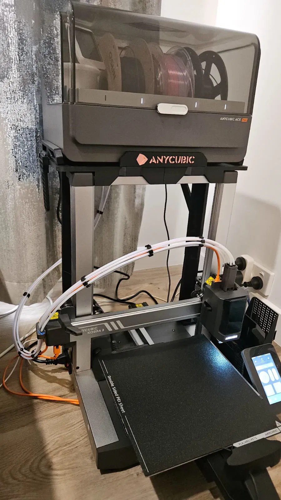 Giải pháp kẹp giúp gom gọn 4 ống dẫn từ ACE, cáp đầu in và ống spool ngoài cho Kobra 3 Combo. Giúp bạn không cần tháo lắp ống dẫn mỗi khi chuyển đổi, giữ cho dây cáp và ống dẫn trên trục X luôn gọn gàng, ngăn nắp.