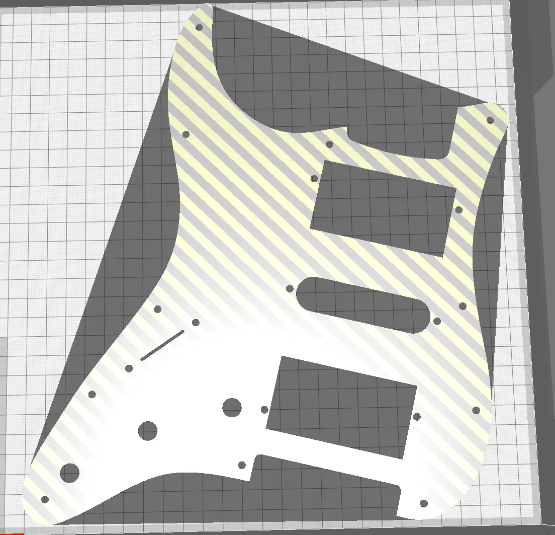 - Kích thước bàn in: Đảm bảo máy in của bạn có khổ in tối thiểu 350x350mm để vừa với kích thước của pickguard này.