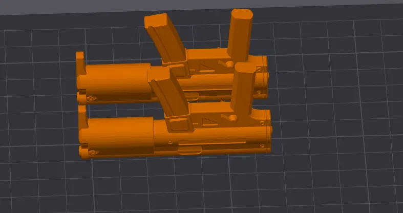 - Hỗ trợ in (Support): Do cấu trúc có một số phần nhô ra, việc đặt thêm support là cần thiết để tránh lỗi bề mặt khi in phần tay cầm và nòng súng.