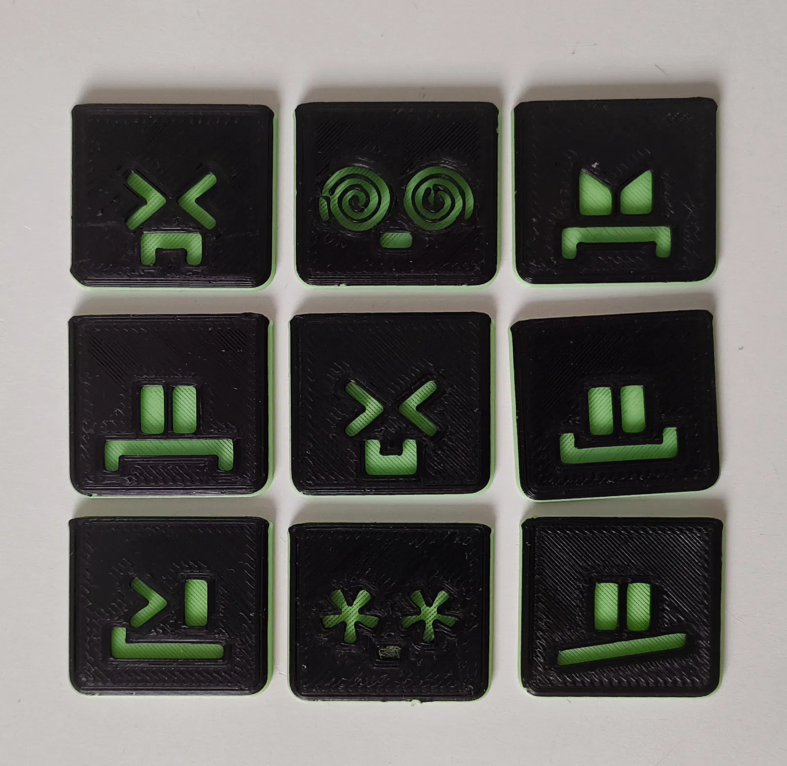 Các khuôn mặt có thể được in bằng cách đổi màu sợi nhựa ngay giữa quá trình in để tạo ra 2 màu sắc khác biệt.