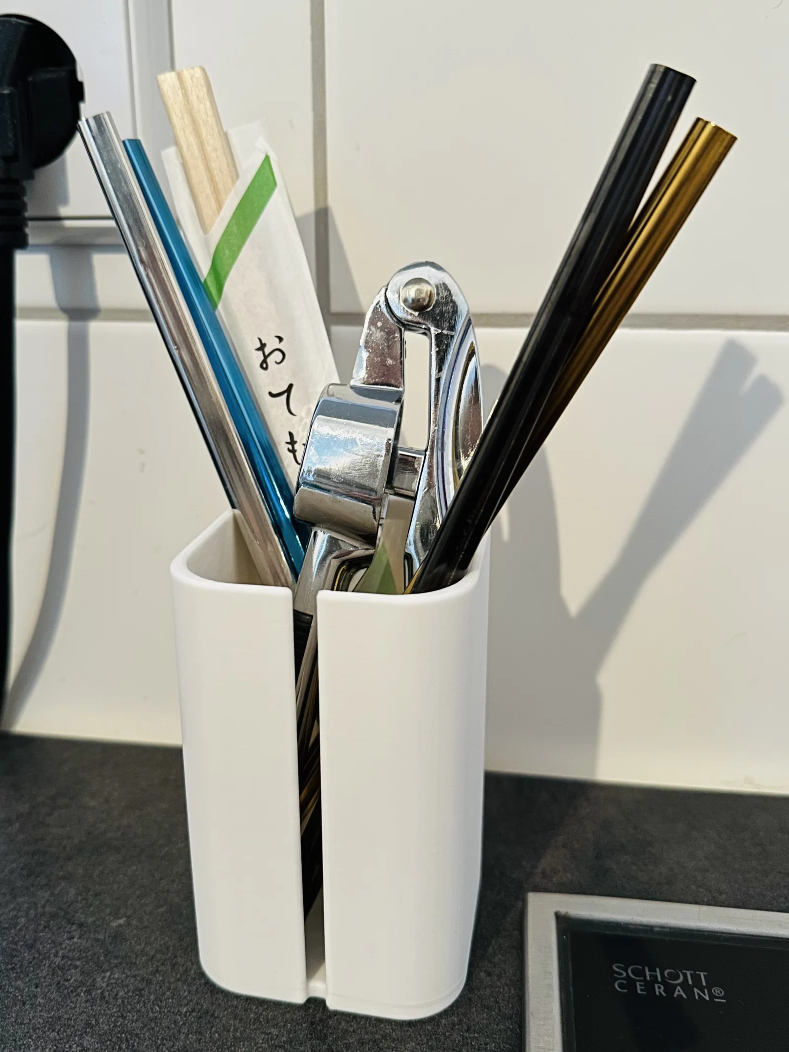 Chiếc ống đựng dụng cụ bếp với thiết kế tối giản, hiện đại, giúp không gian nấu nướng của bạn trở nên ngăn nắp và sang trọng hơn. Sản phẩm dễ in 3D, phù hợp cho mọi đối tượng từ người mới đến chuyên gia.