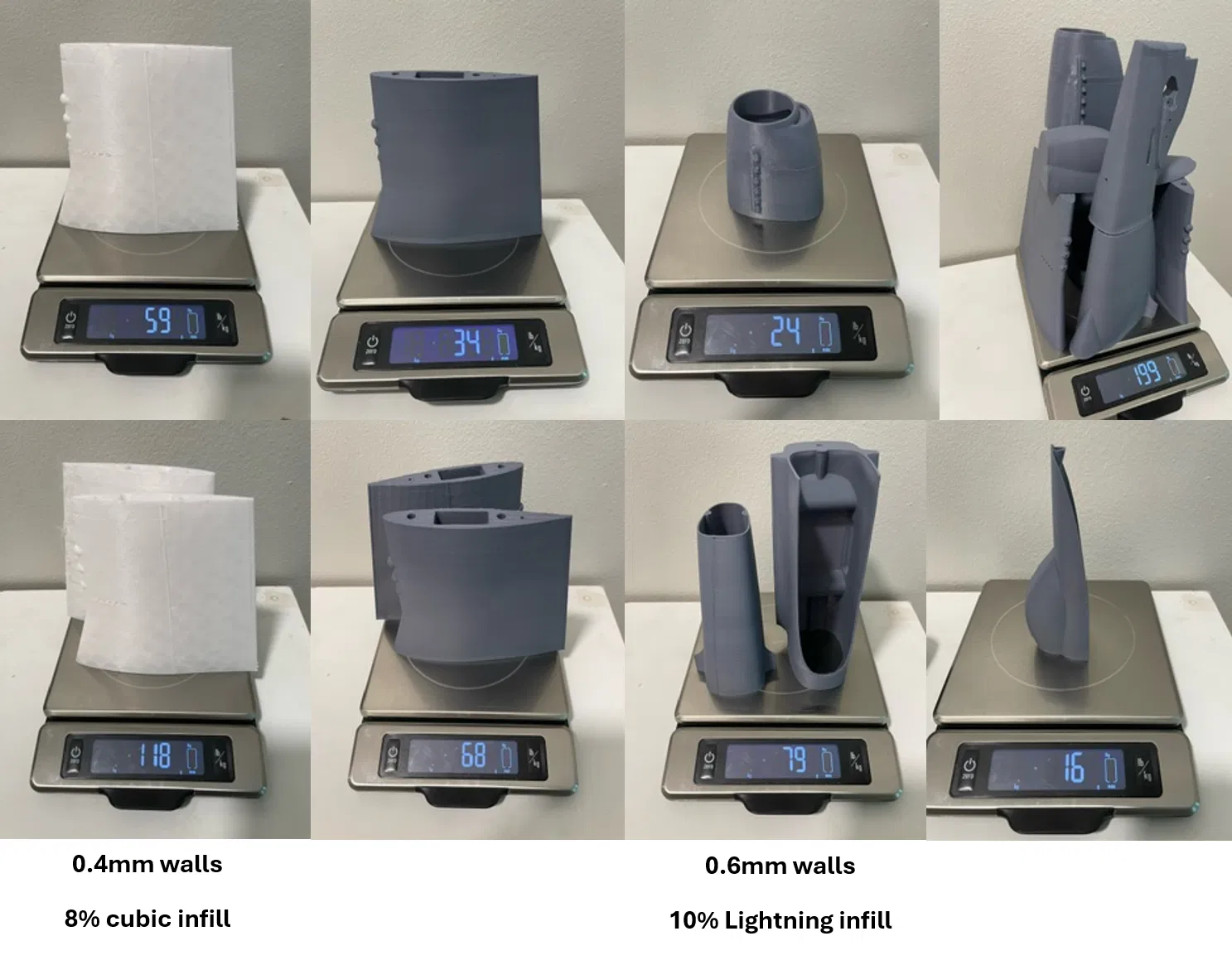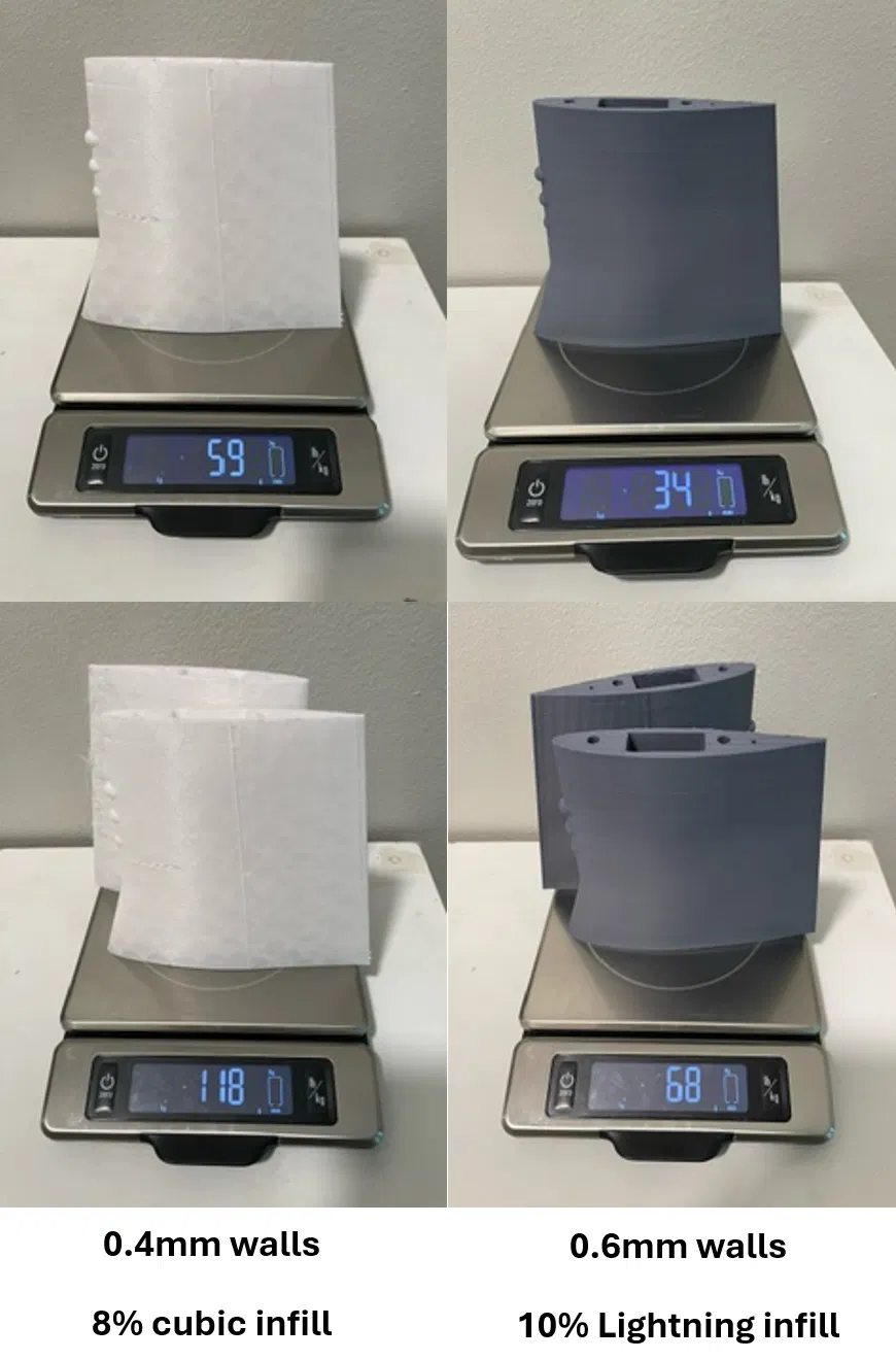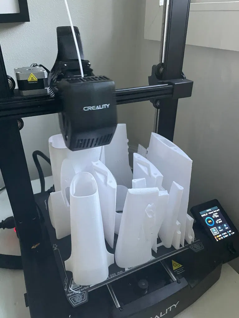Như trong ảnh, mình đã in được gần như tất cả các mảnh cùng một lúc trên chiếc Ender 3 V3 SE của mình! File G-code cho Ender 3 mình cũng đính kèm luôn! Mình khuyên anh em nên dùng G-code này, để độ dày vách 0.4mm và infill lightning 10%. Mình đã in thử 5 mô hình rồi và thấy độ dày 0.4mm là tối ưu nhất. Ảnh minh họa hữu ích:
