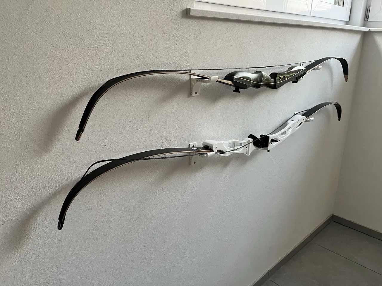 Đây là một cách tuyệt vời để cất giữ cây cung của bạn một cách gọn gàng khi không sử dụng. Giá treo được gắn vào tường bằng hai con ốc vít. Bạn hãy sử dụng hai phần giá đỡ để cố định cung thật chắc chắn, có thể lót thêm một chút đệm mút để tránh làm trầy xước cây cung của bạn.