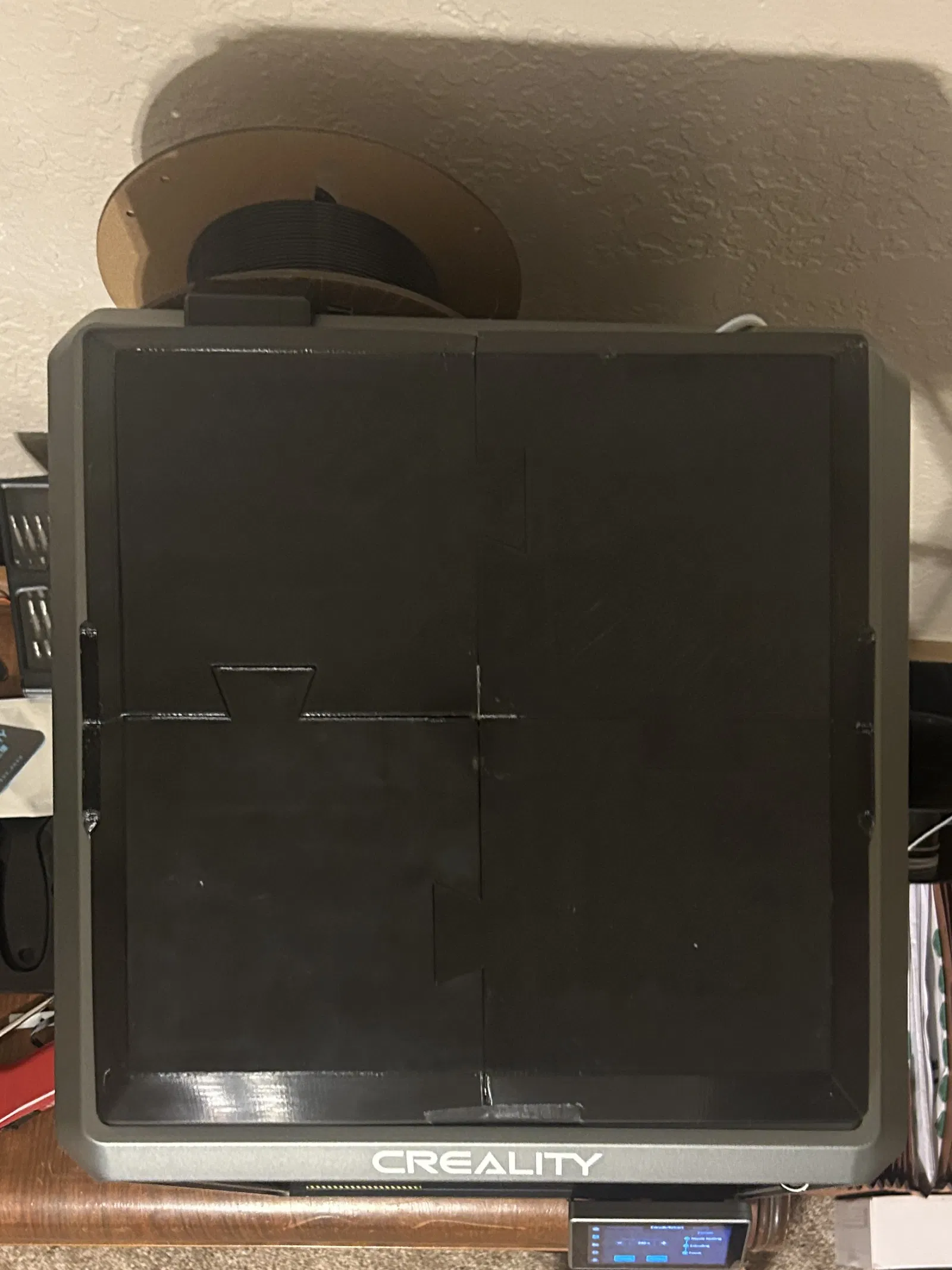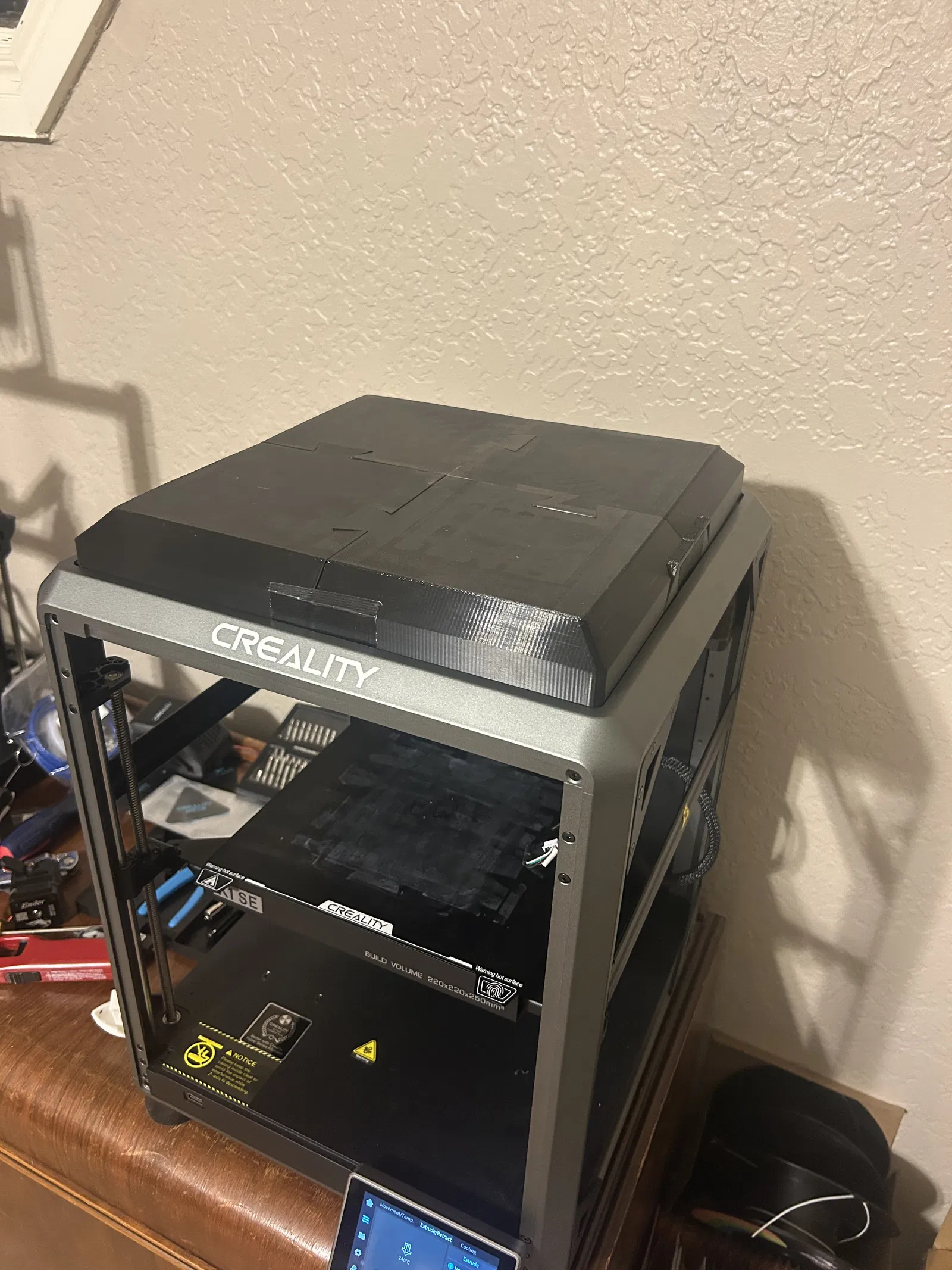 Cách tiếp cận này chia nắp đậy thành 4 phần bằng nhau, giúp việc in ấn trở nên nhẹ nhàng hơn, giảm thiểu rủi ro lỗi khi in mô hình lớn. Sau khi hoàn tất in cả 4 mảnh, bạn chỉ cần dùng keo dán chuyên dụng (CA glue) để ghép chúng lại với nhau. Kết quả là bạn sẽ có một nắp đậy chắc chắn, vừa vặn hoàn hảo với khung máy Creality K1 của mình, giúp giữ nhiệt ổn định và bảo vệ không gian in bên trong.
