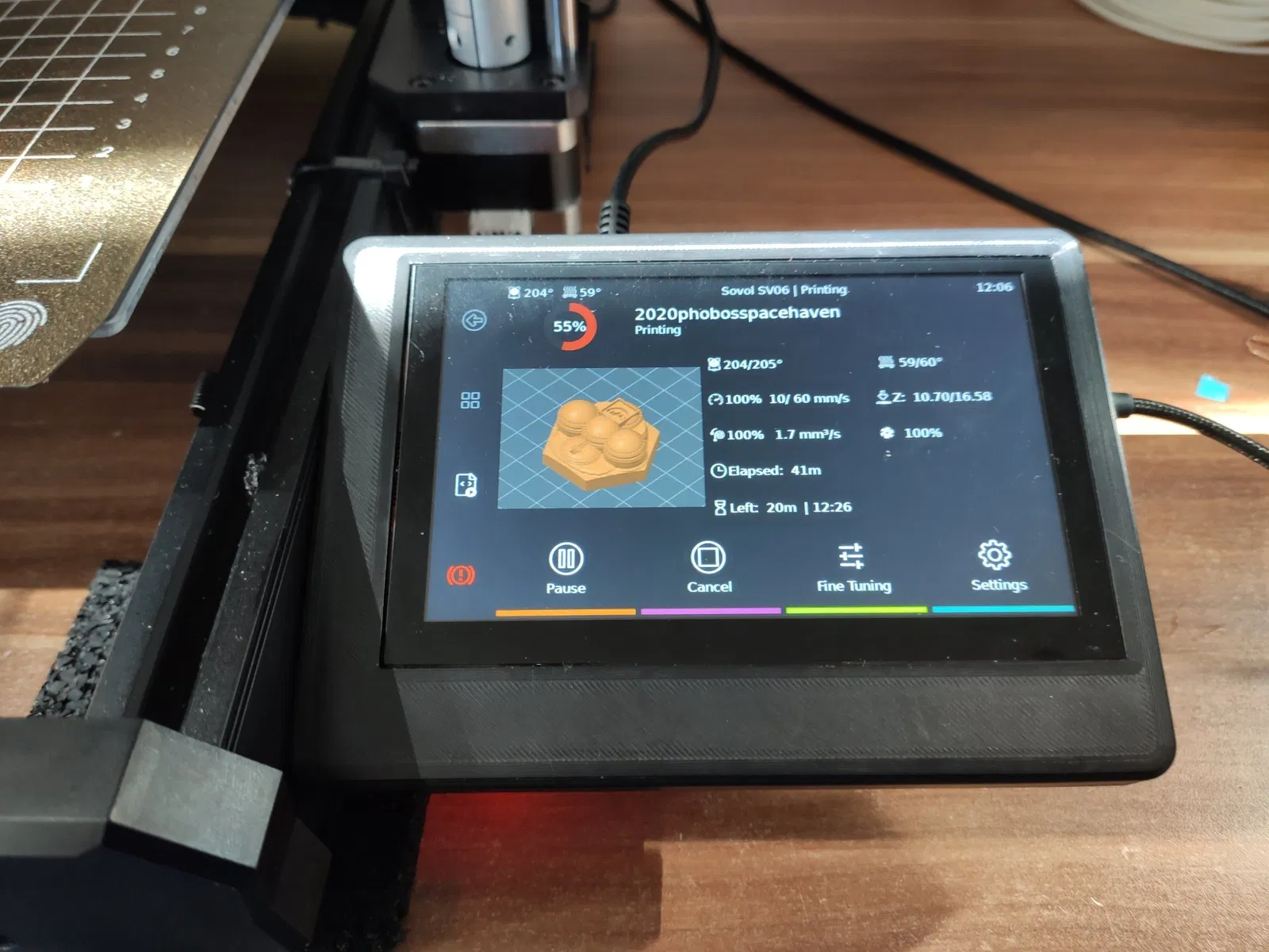 Gắn kết cho màn hình cảm ứng BigTreetech TFT50 cho SOVOL SV06. Được sử dụng với Raspberry Pi và Klipper.