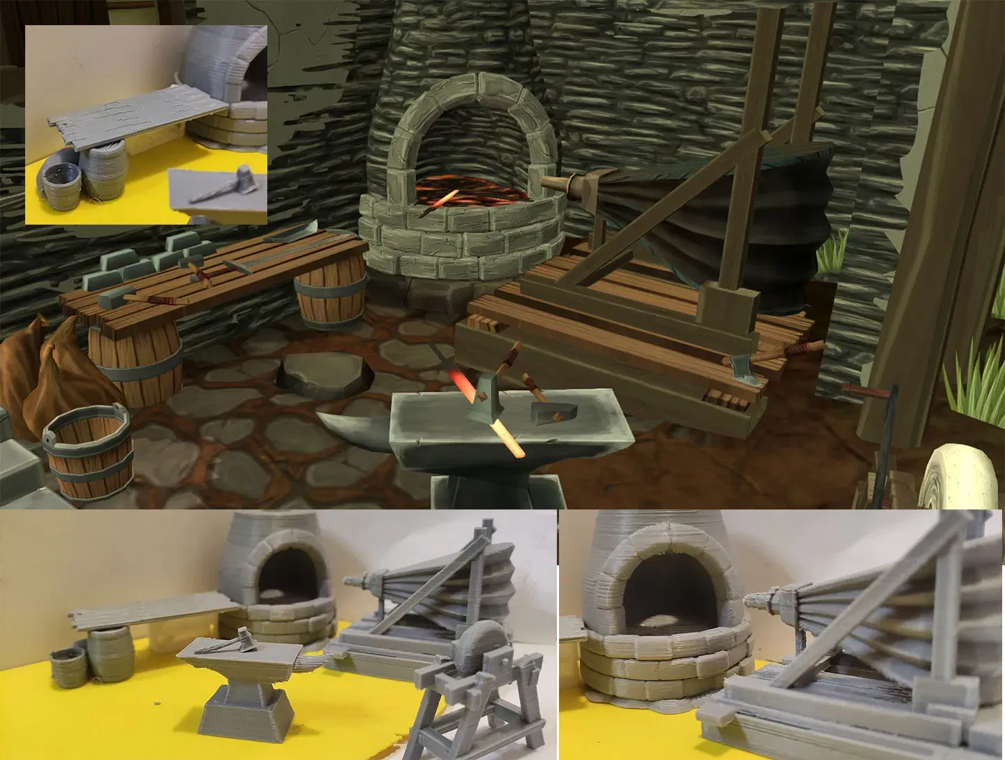 Xưởng rèn phong cách hoạt hình với mô hình nội thất và công...