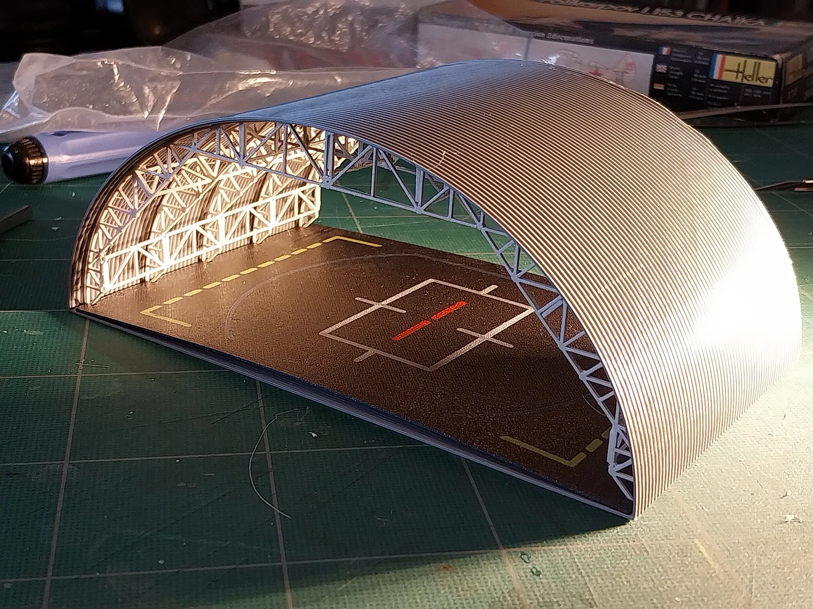 Nhà chứa máy bay dùng để bảo vệ các mô hình máy bay tỷ lệ 1:72 của bạn, tạo vẻ ngoài như một sa bàn thực thụ. Dự án này vẫn đang trong quá trình hoàn thiện. Sử dụng ít nhựa, phù hợp in với đầu phun 0.8mm hoặc 0.4mm.
